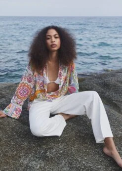 tissu 100Â % coton, coupe droite, coupe longue, imprime, col chemise, manches longues boutonnees, fermeture boutonnee sur le devantComposition: 100% coton