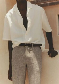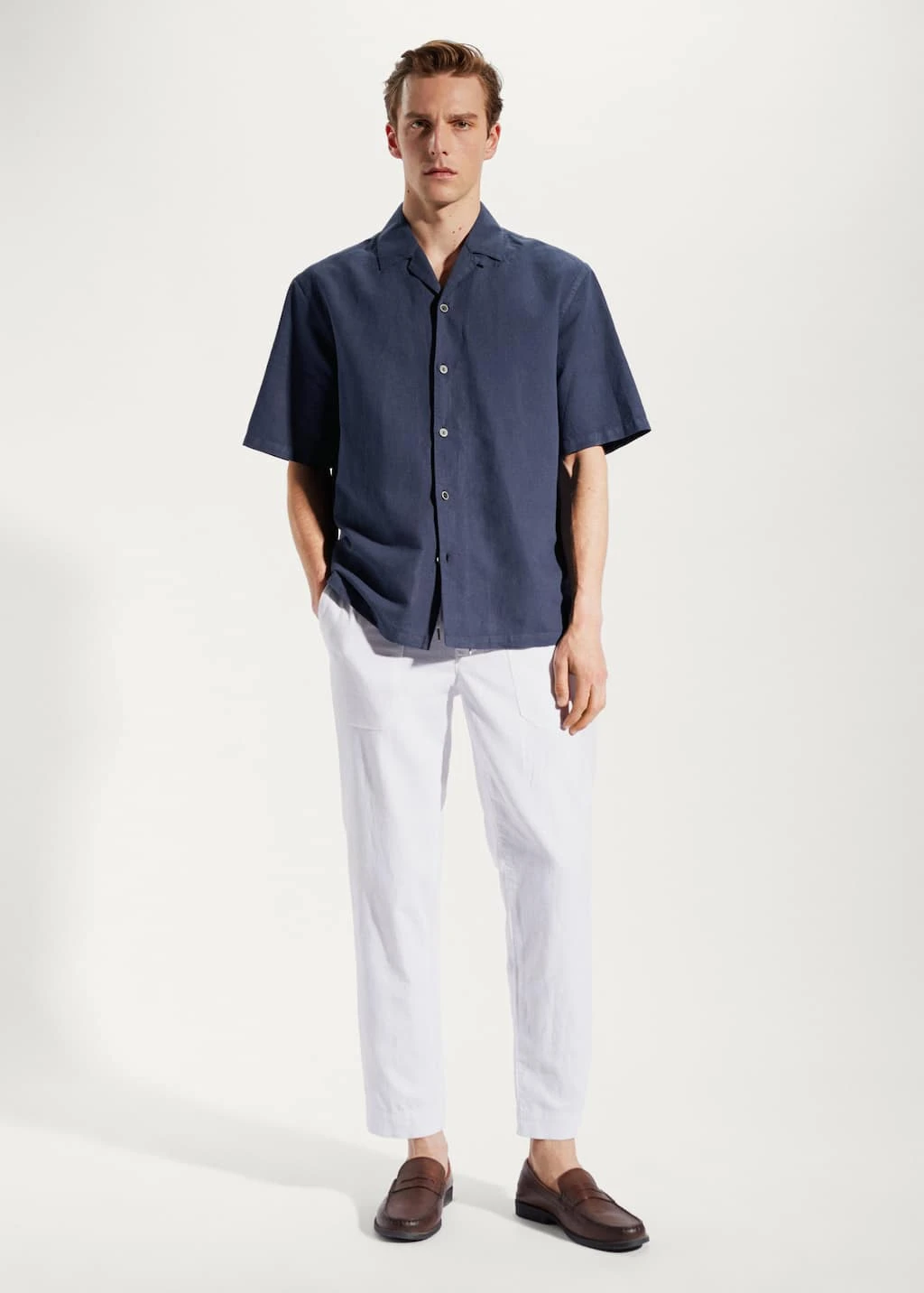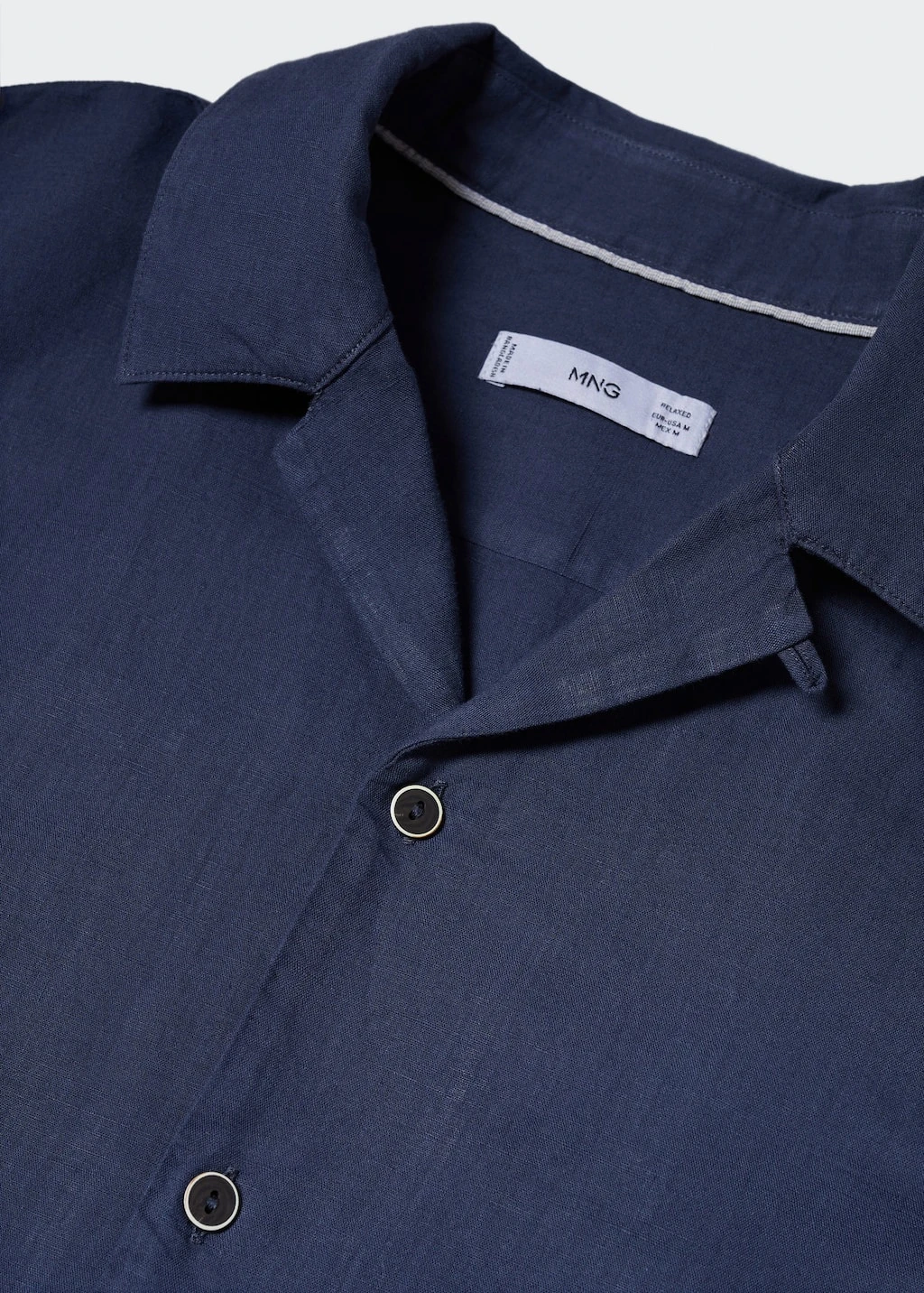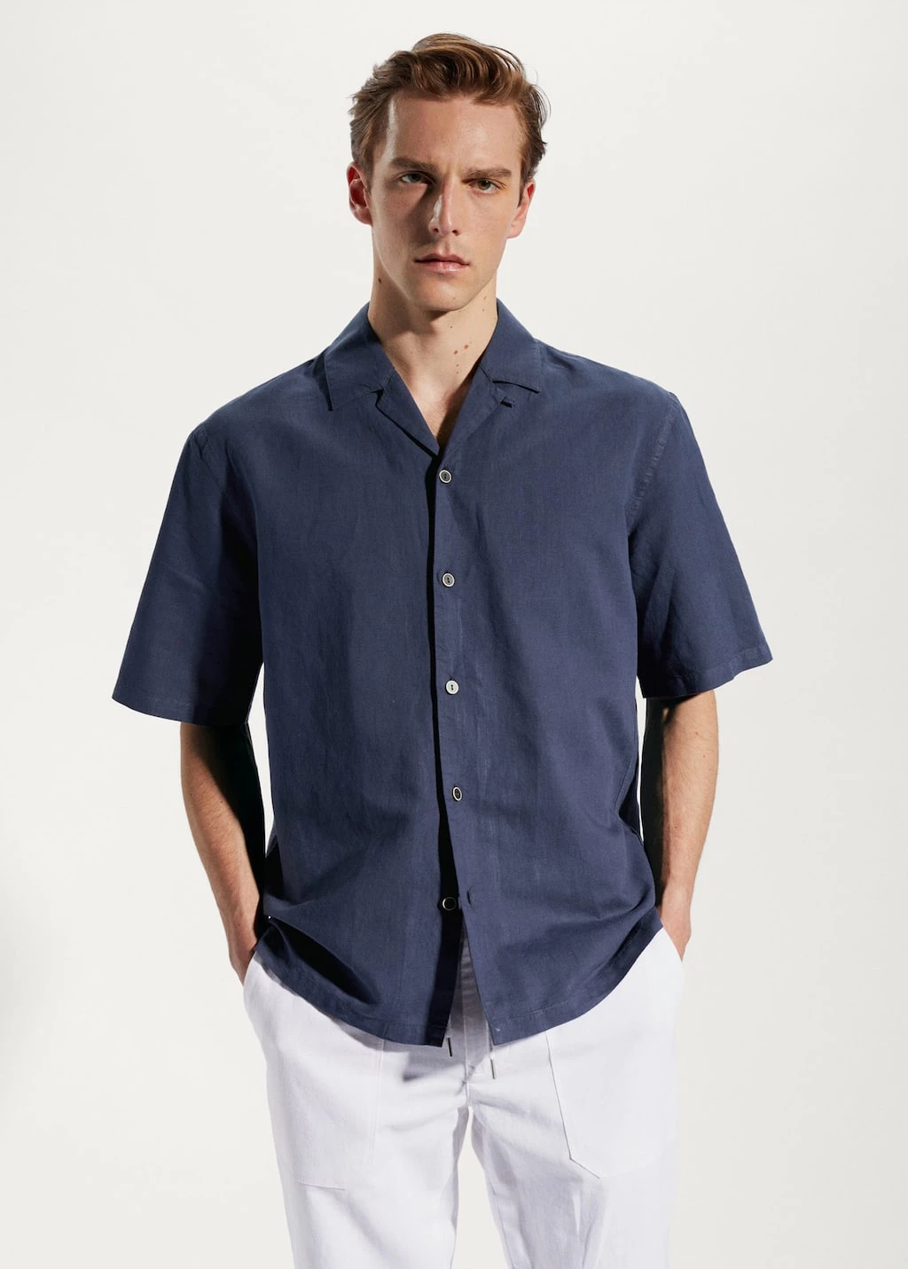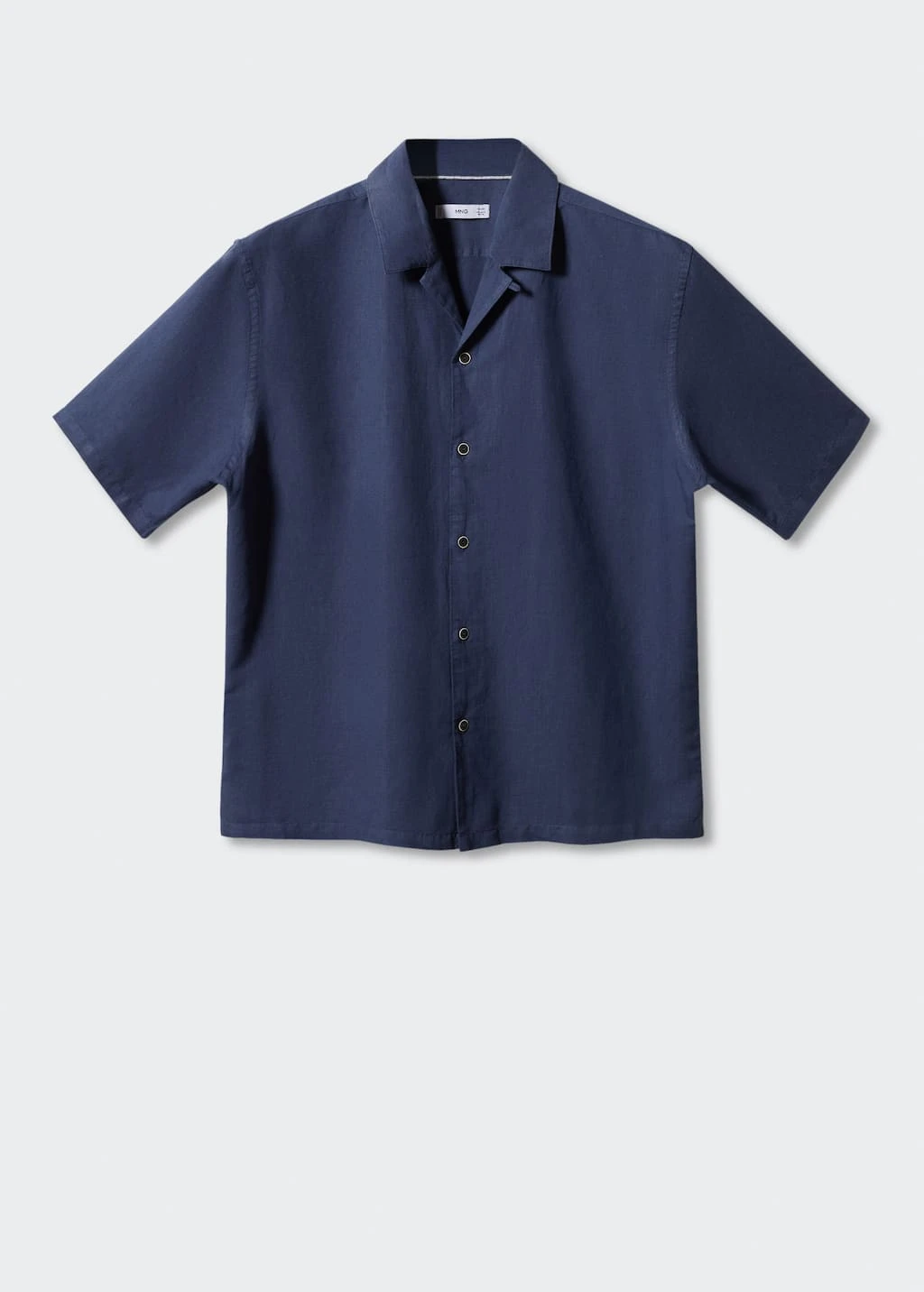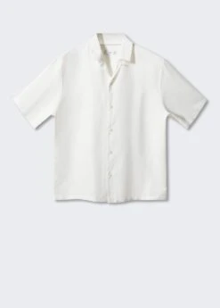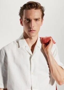 tissu en coton et lin melanges, regular-fit, tissu leger, coupe standard, col bowling boutonne, fermeture a boutons sur le devant, manches courtes, bas droit, le mannequin mesure 190 cm et porte une taille mComposition: 55% lin,45% coton