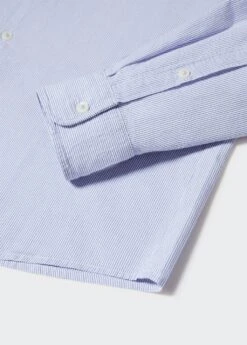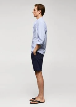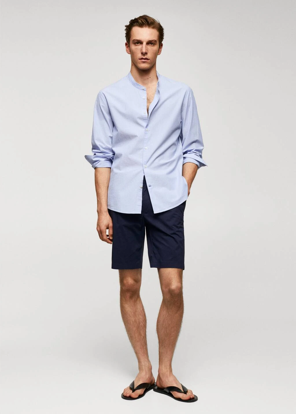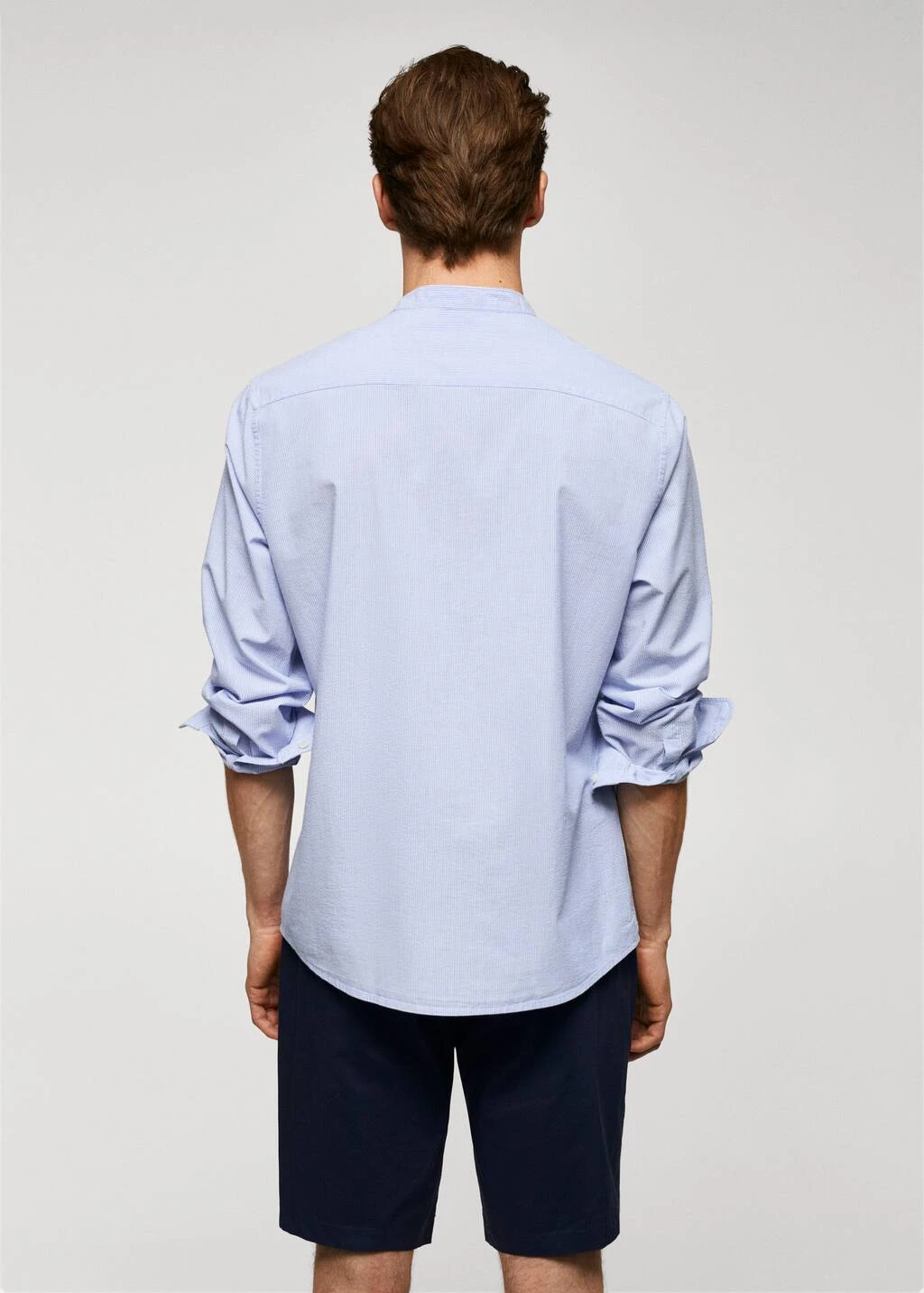 tissu en coton, regular-fit, effet seersucker, imprime milleraies, tissu leger, coupe standard, col mao, fermeture a boutons sur le devant, manches longues avec poignets boutonnes, bas arrondi, le mannequin mesure 190 cm et porte une taille mComposition: 74% coton,14% polyester,12% viscose