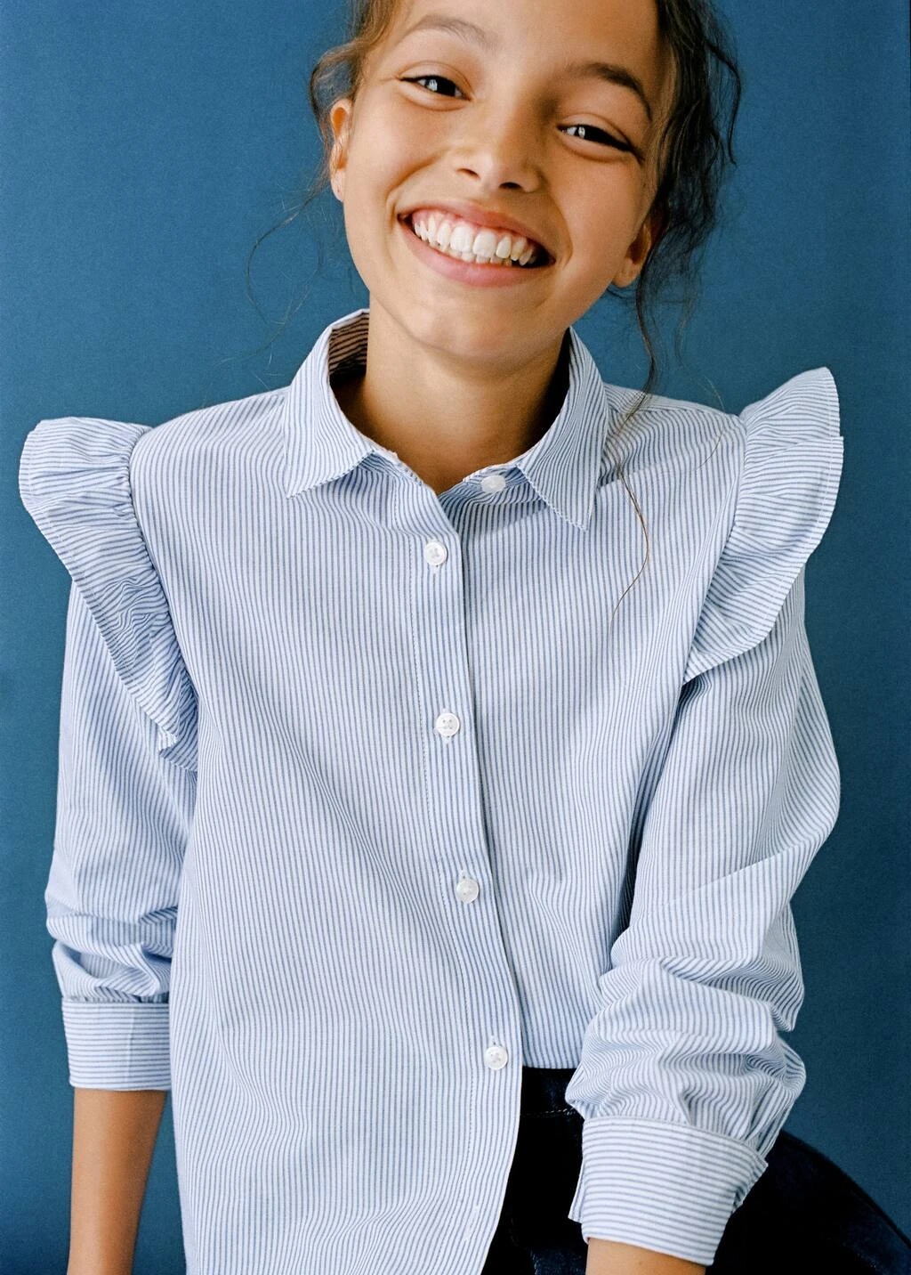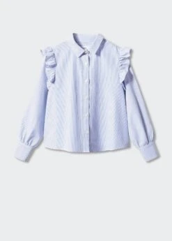 100 % coton, imprime rayures, coupe droite, details volantes, col chemise, manches longues, fermeture a boutons sur le devantComposition: 100% coton