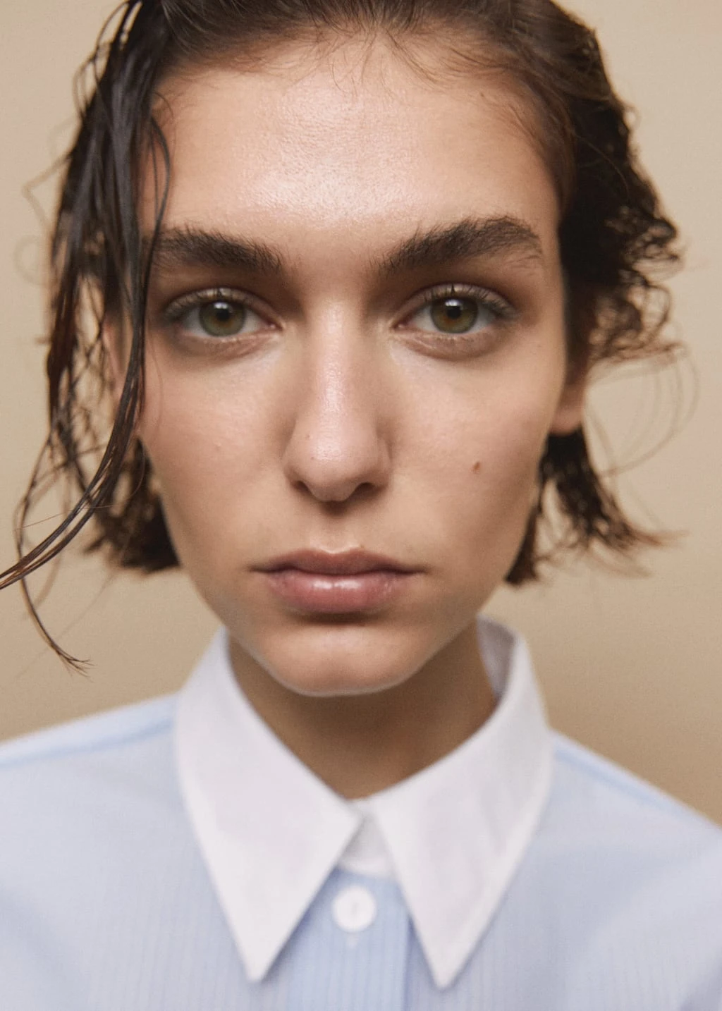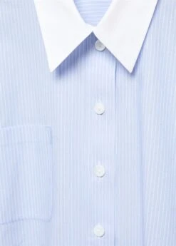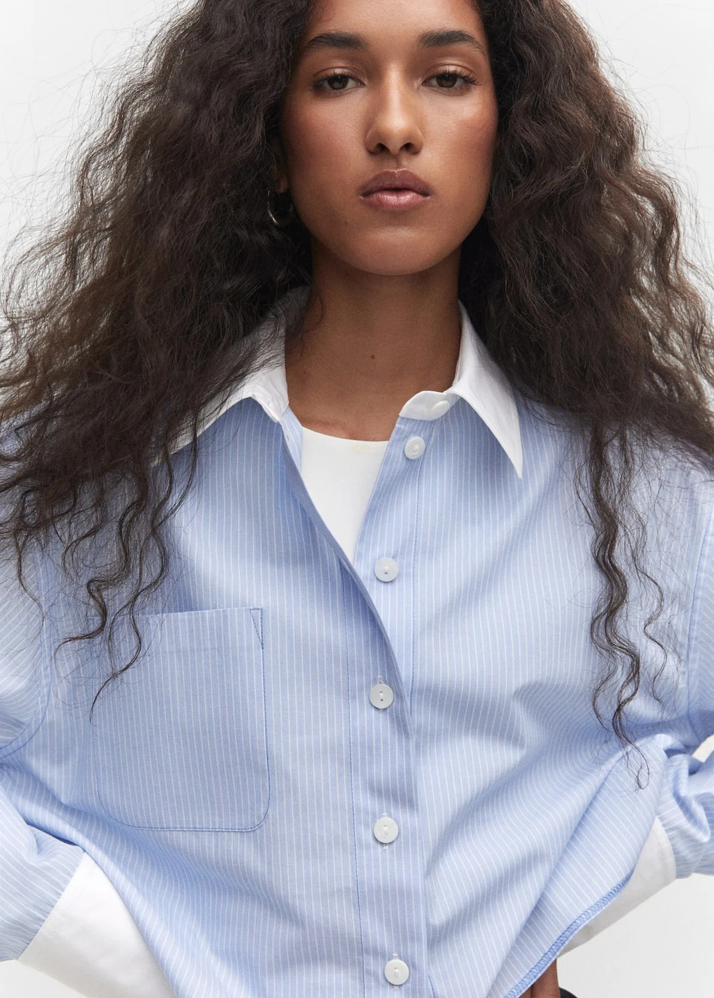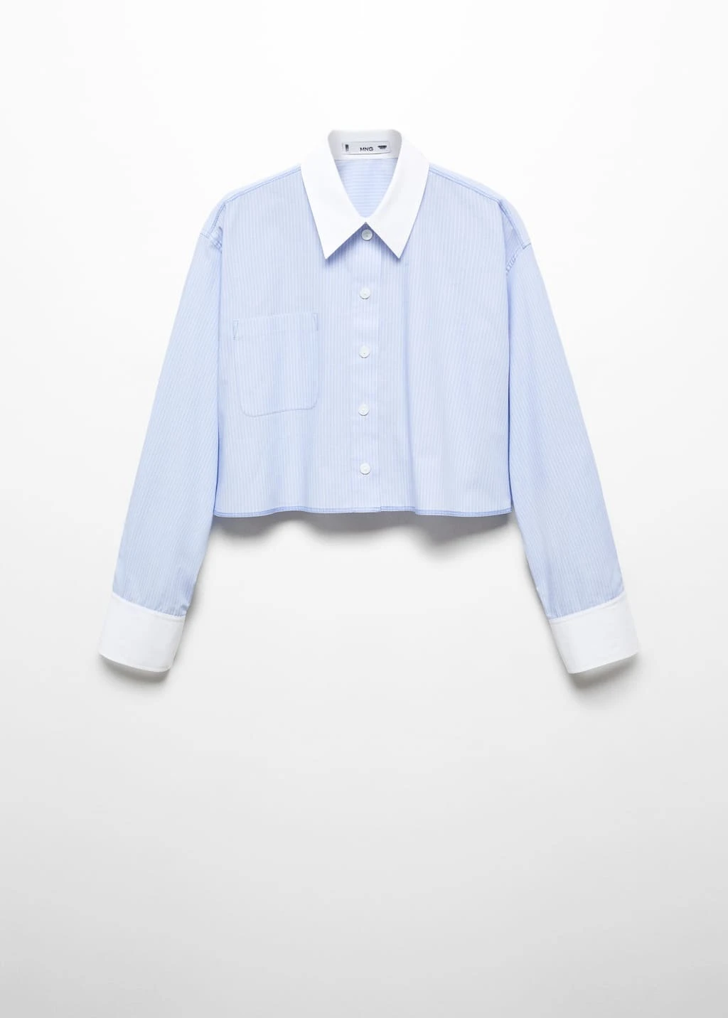 tissu 100Â % coton, style crop, coupe droite, motif raye, col chemise, col contrastant, manches longues boutonnees, poignets contrastants, poche plaquee sur la poitrine, fermeture boutonnee sur le devantComposition: 100% coton