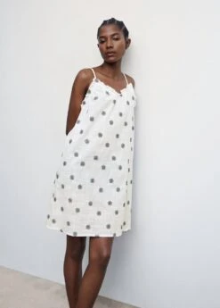 tissu 100 % coton, coupe droite, coupe courte, col en v, bretelles fines ajustables, sans fermeture, broderie de fleursComposition: 100% coton