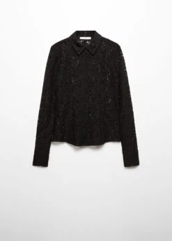 tissu de coton melange, tissu en dentelle, droit, col chemise, manches longues, fermeture a boutons sur le devantComposition: 43% polyamide,37% coton,20% viscose