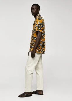 regular-fit, tissu fluide, imprime feuilles, col bowling boutonne, fermeture a boutons sur le devant, manches courtes, bas avec fentes laterales, le mannequin mesure 190 cm et porte une taille m, il est recommande de laver a froidComposition: 100% viscose