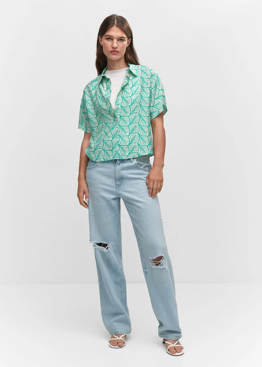 tissu fluide, imprime, coupe courte, col chemise, fermeture a boutons sur le devant, manches courtesComposition: 80% viscose,20% polyamide