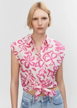 tissu 100 % coton, coupe droite, style crop, imprime, col chemise, sans manches, fermeture boutonnee sur le devant, fermeture a nouerComposition: 100% coton