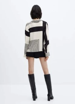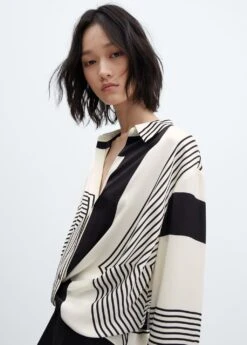 tissu fluide, croise, droit, imprime geometrique, col chemise, manches longues boutonnees, fermeture boutonnee sur le devantComposition: 100% polyester
