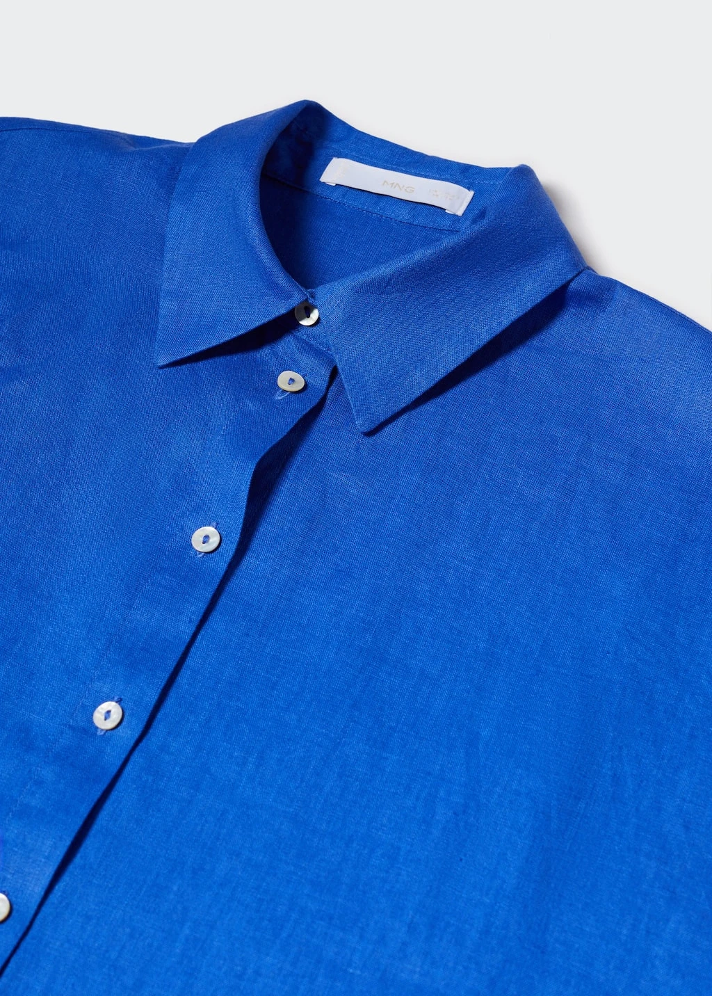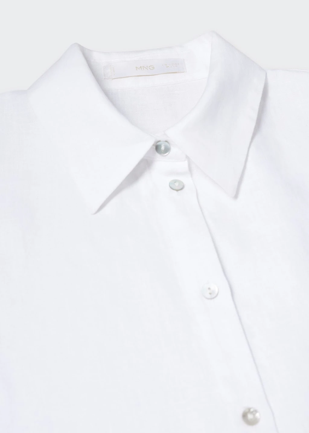 tissu 100Â % lin, tissu fluide, coupe droite, col chemise, manches courtes, fermeture boutonnee sur le devantComposition: 100% lin
