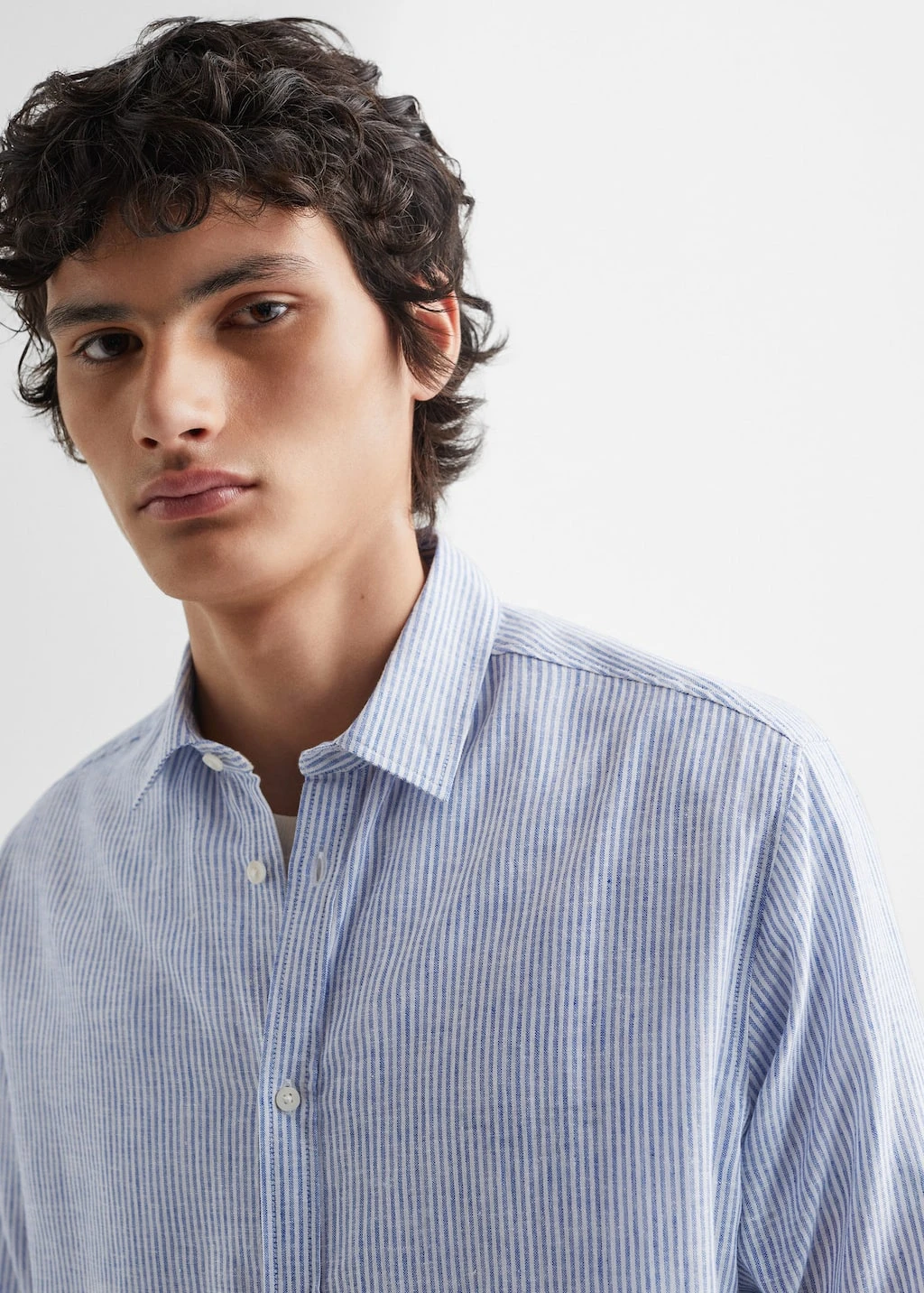 tissu en coton et lin melanges, motif raye, regular-fit, col chemise, manches longues, fermeture a boutons sur le devant, avec ce vetement en coton, vous soutenez notre investissement dans la mission de better cotton. ce tissu est un equilibre de masse qui remplace ou melange du coton better cotton avec du coton conventionnel, aussi il est possible qu’il ne contienne pas de better cotton. les agriculteurs partenaires beneficient d’un soutien et d’une formation continus.COMPOSITION:55% LIN,45% COTON