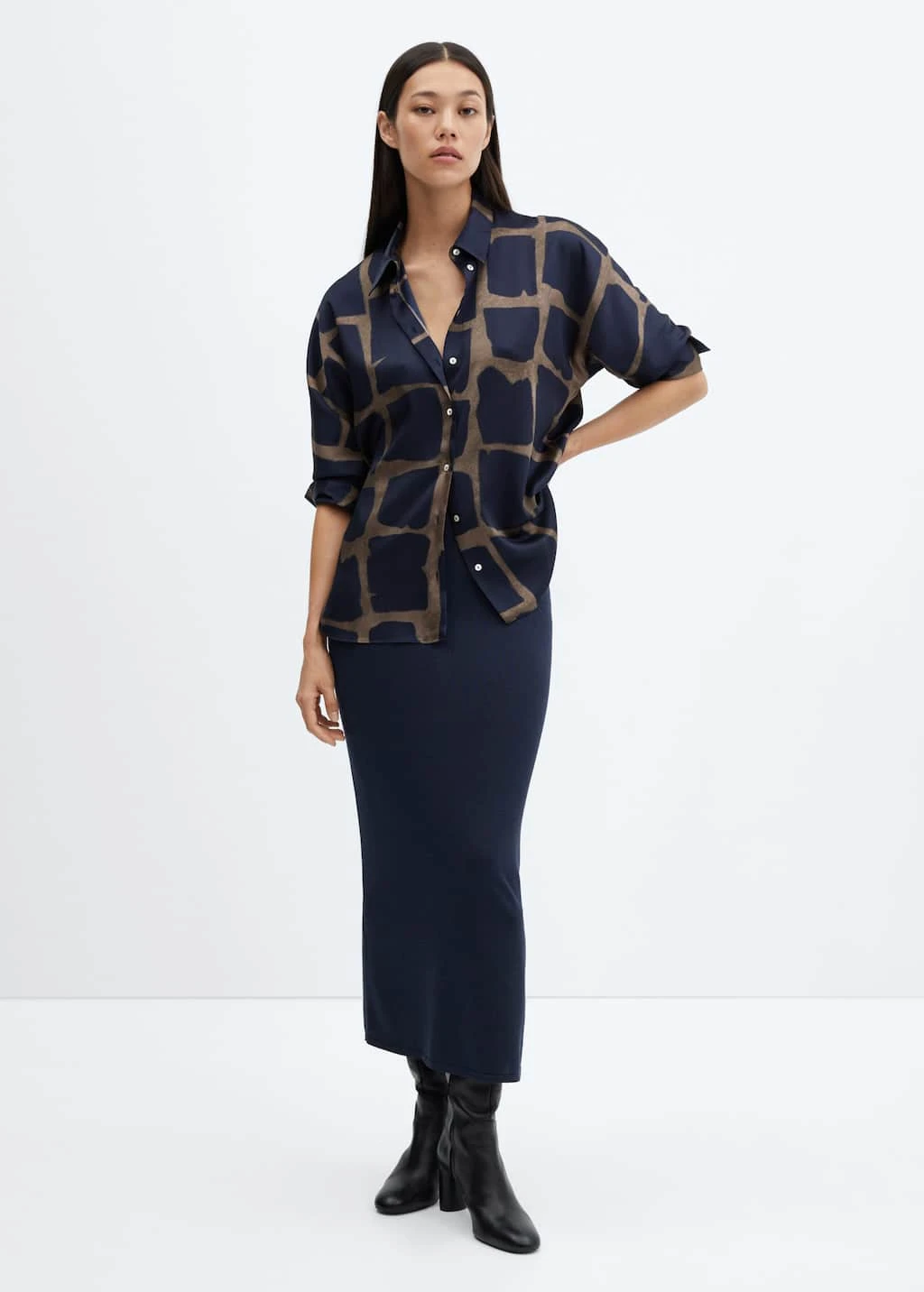 tissu fluide, coupe longue, imprime, col chemise, manches longues avec poignets boutonnes, fermeture boutonnee sur le devant, bas arrondiComposition: 100% polyester