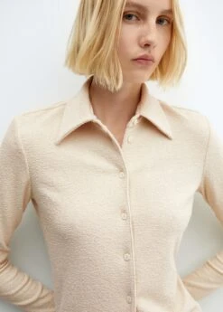 tissu en maille, texture, coupe droite, col chemise, manches longues, fermeture a boutons sur le devant, total lookComposition: 67% polyester,28% viscose,5% elasthanne