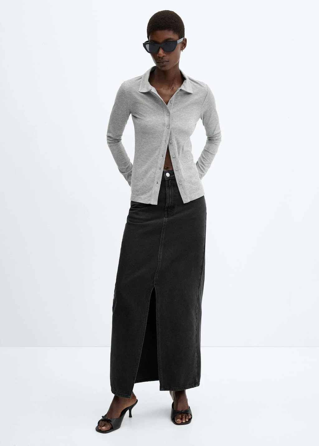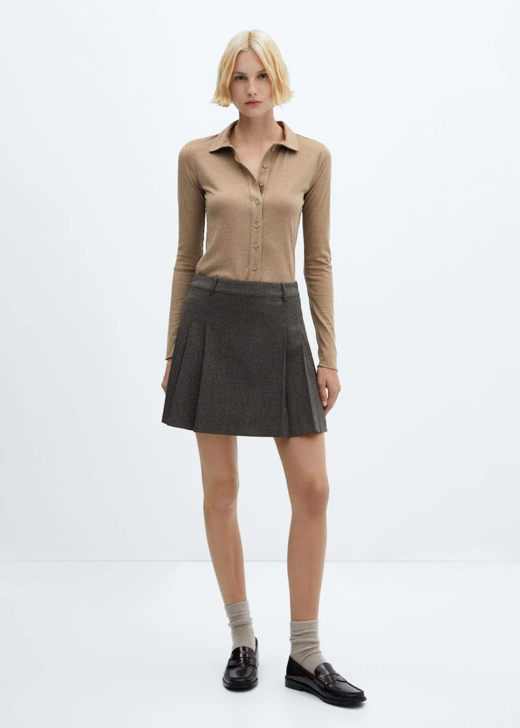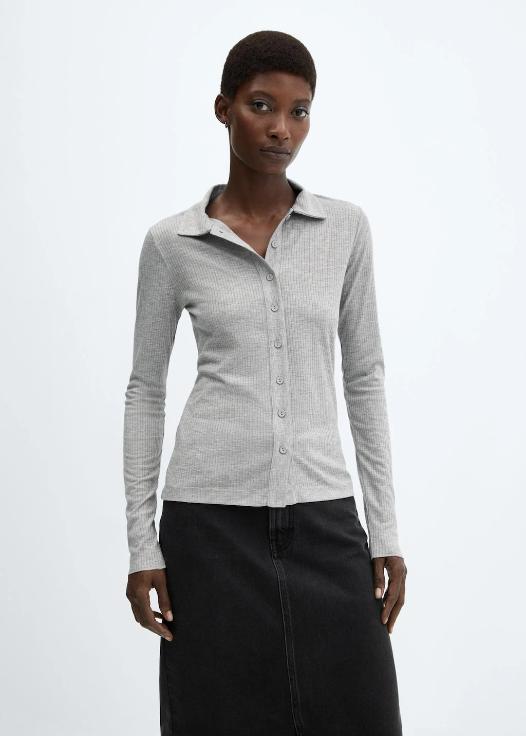 tissu en maille cotelee, tissu en maille fine, col chemise, manches longues, fermeture boutonnee sur le devantComposition: 67% polyester,33% viscose