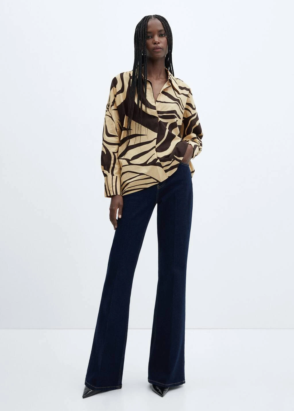 tissu 100Â % coton, tissu fluide, imprime abstrait, coupe droite, style oversize, col chemise en v, manches longues avec poignets boutonnes, total lookComposition: 100% coton