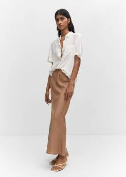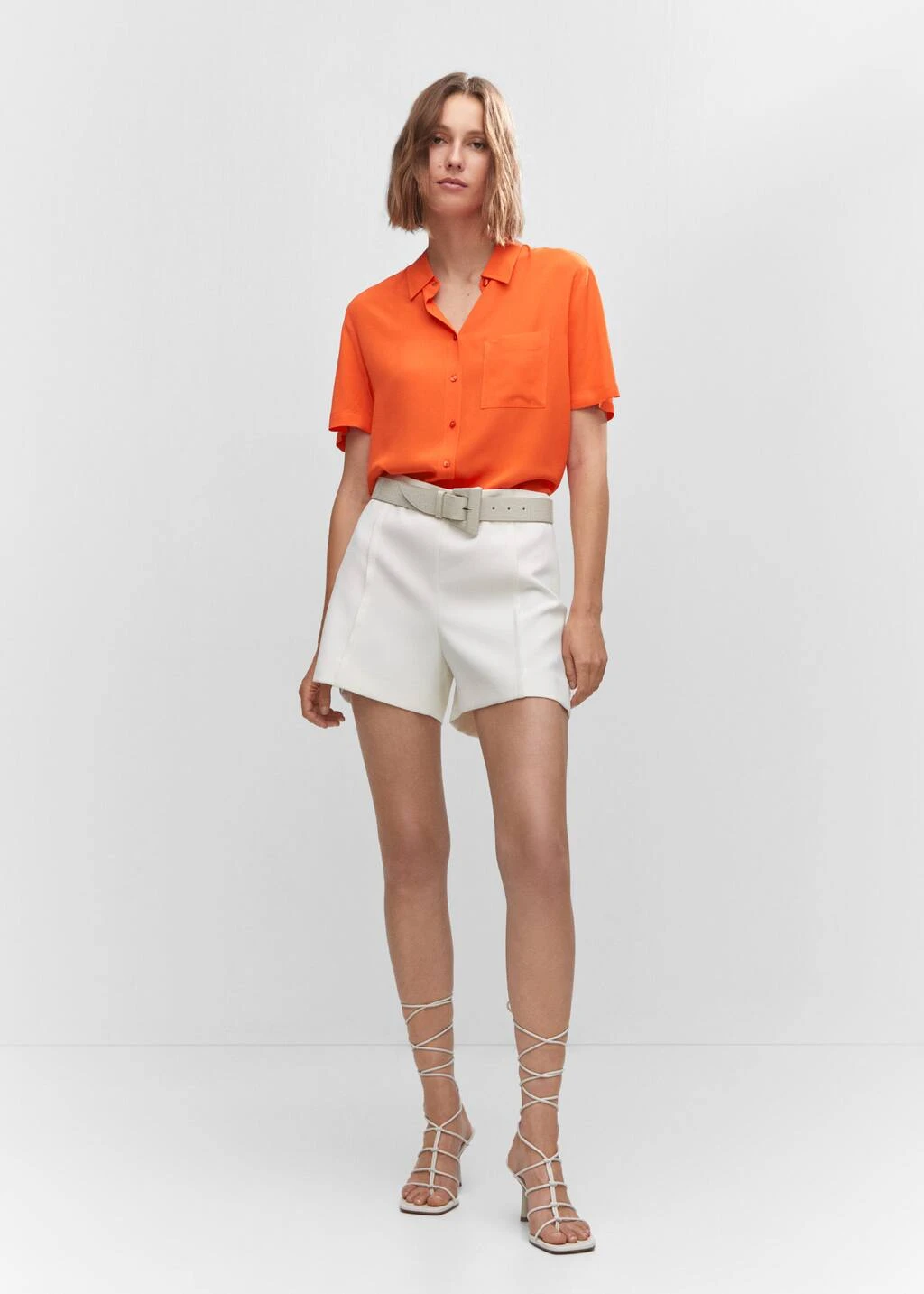 tissu fluide, style oversize, coupe longue, col chemise, manches courtes, poche plaquee sur le devant, fermeture boutonnee sur le devantComposition: 100% viscose