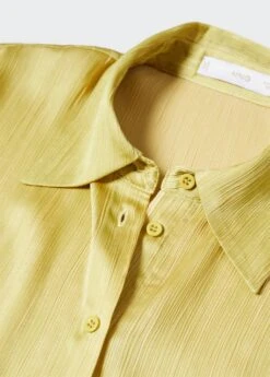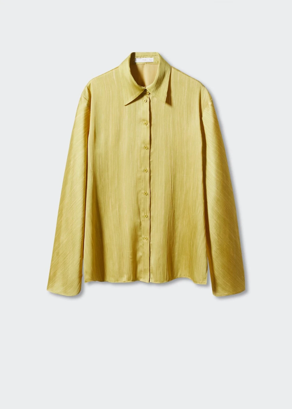 tissu satine, tissu fluide, design plisse, coupe droite, col chemise, manches longues, fermeture a bouton sur le devant, total lookComposition: 100% polyester