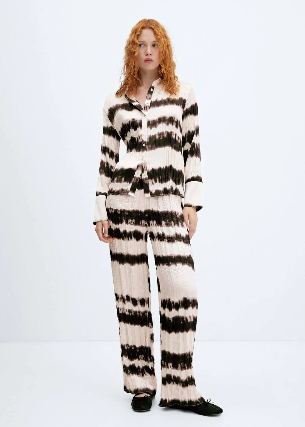 tissu plisse, tissu satine, tissu fluide, imprime tie-dye, droit, col chemise, manches longues avec poignets boutonnes, fermeture boutonnee sur le devant, total lookComposition: 100% polyester