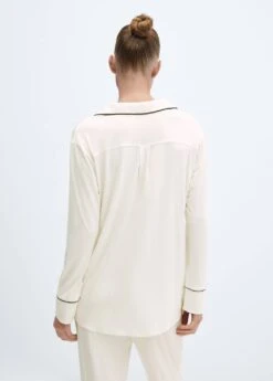 tissu fluide, col a revers, revers crantes, manches longues, liseres contrastants, fermeture a boutons sur le devantComposition: 96% viscose,4% elasthanne