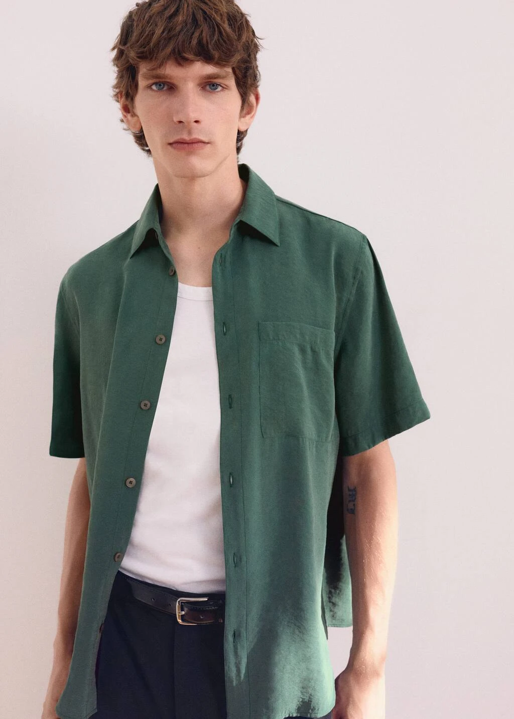 regular-fit, tissu modal leger, respirant et resistant, col chemise, fermeture a boutons sur le devant, poche plaquee sur la poitrine, manches courtes, bas arrondi, le mannequin mesure 190 cm et porte une taille mComposition: 84% modal,16% polyester