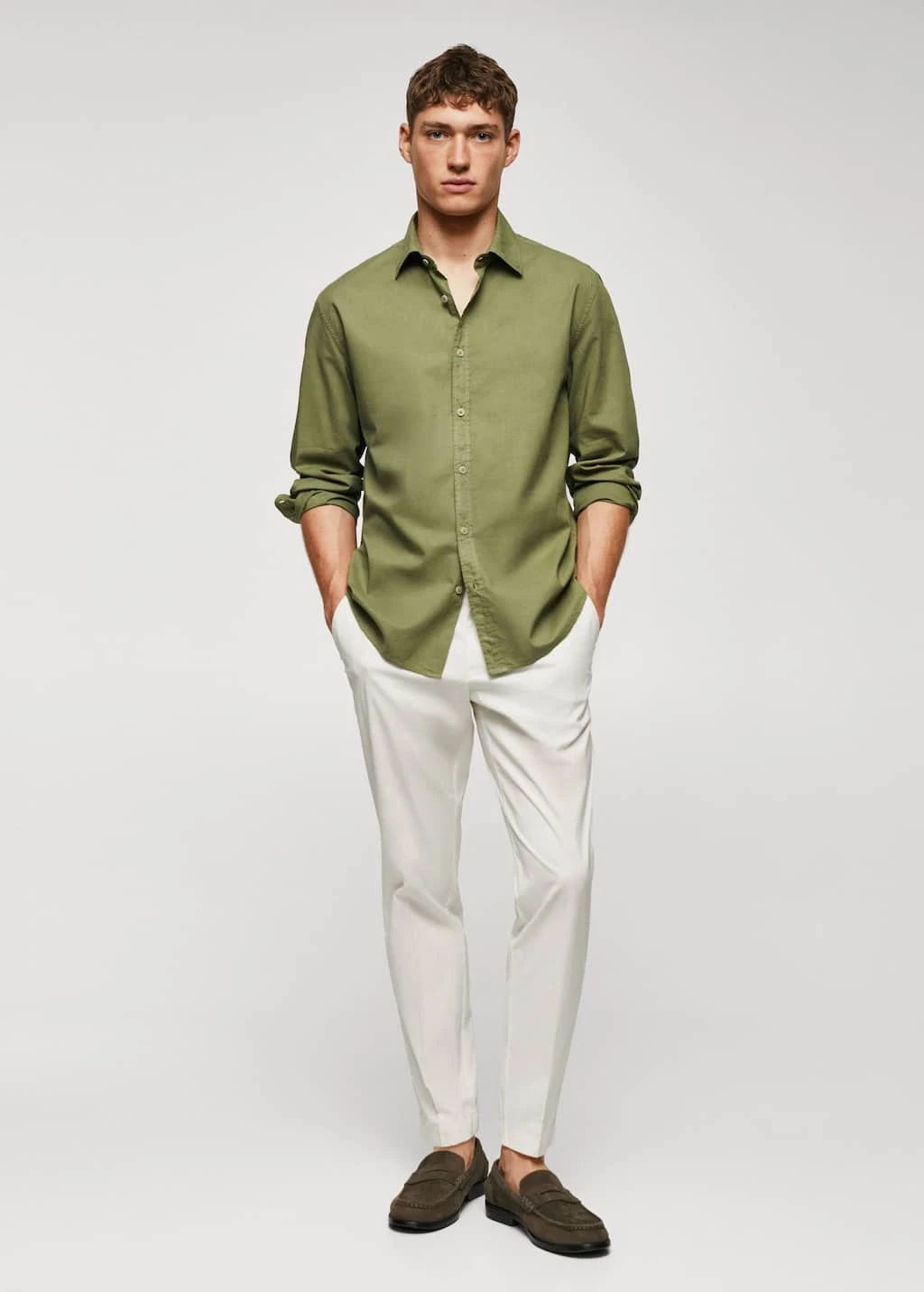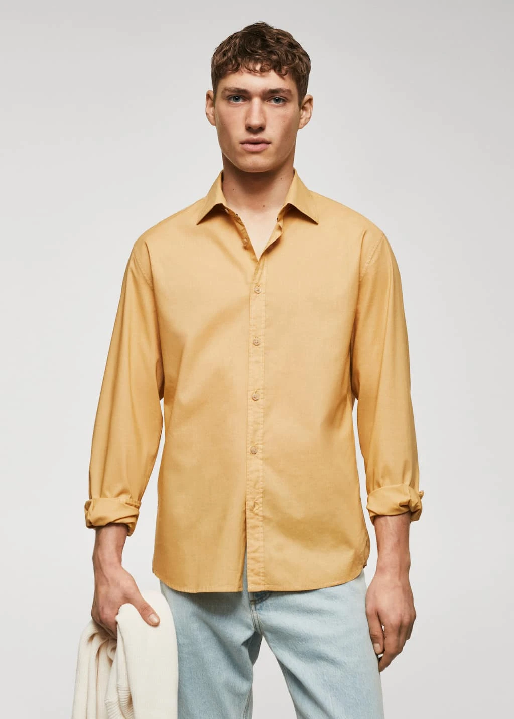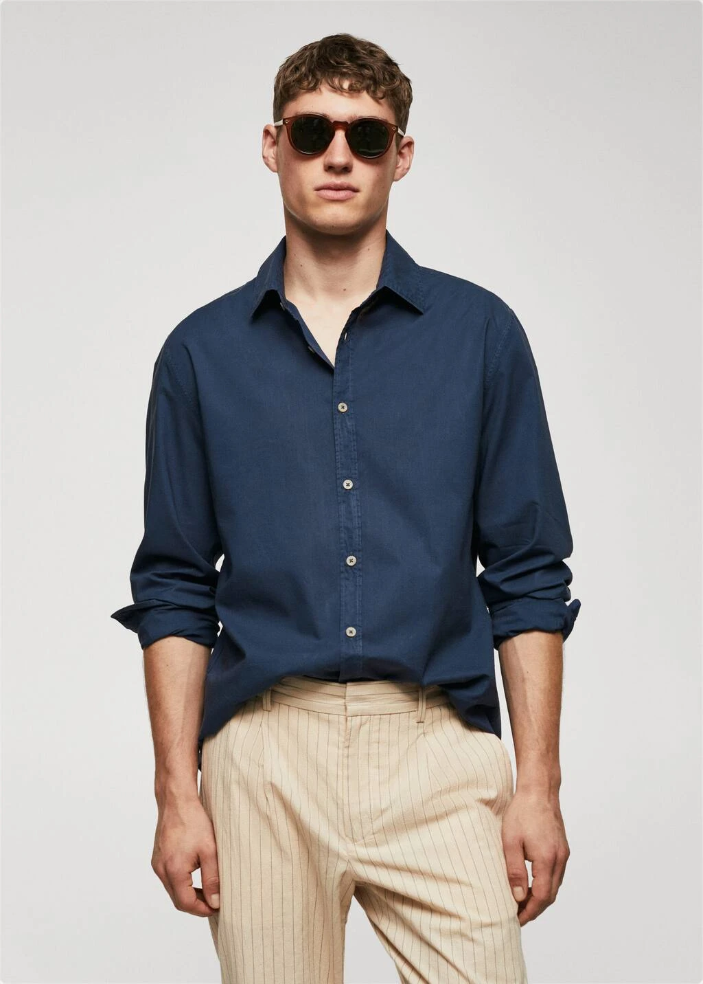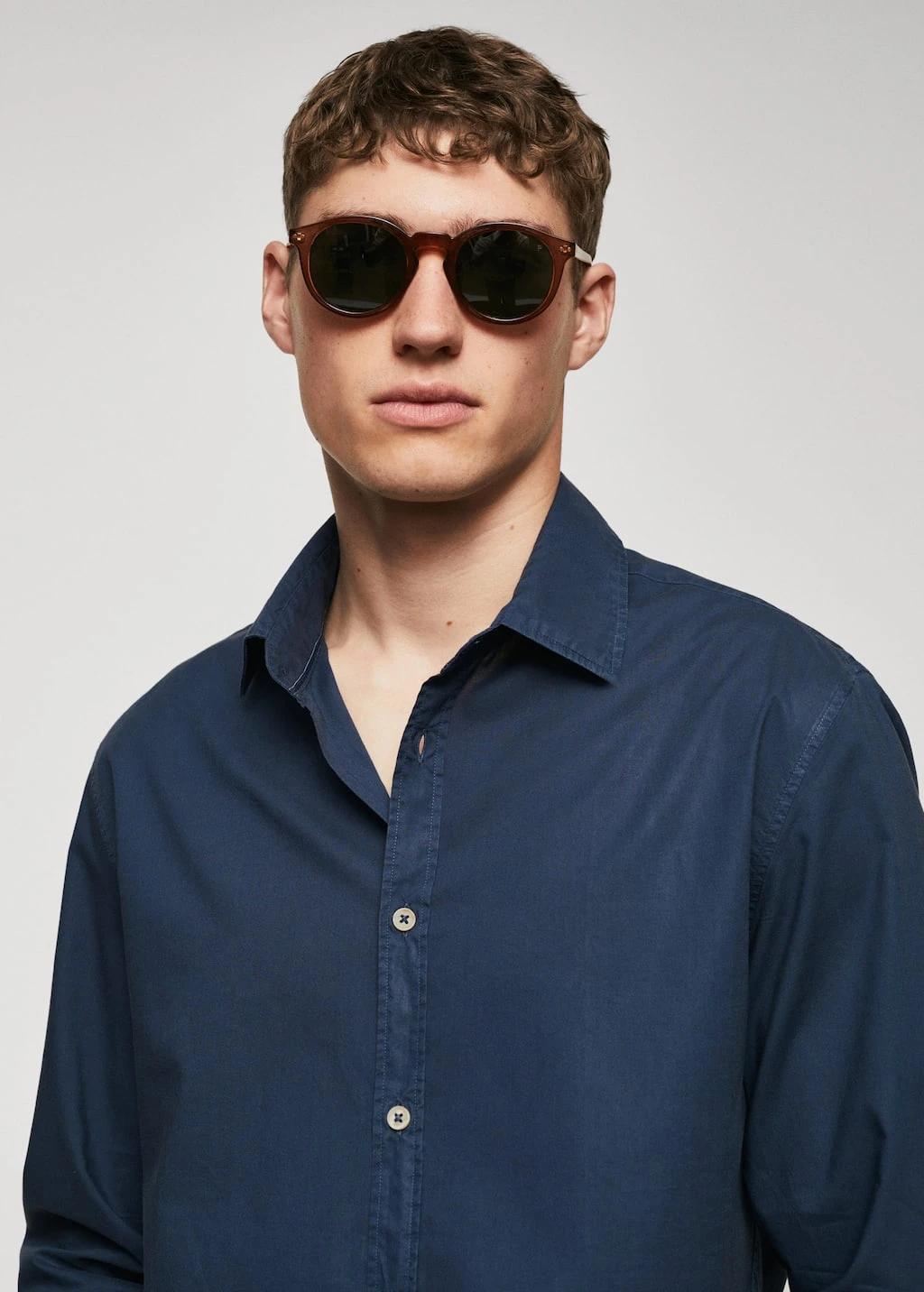 tissu 100 % coton, tissu fin en voile de coton, regular-fit, col chemise, fermeture a boutons sur le devant, manches longues avec poignets boutonnes, bas arrondi, le mannequin mesure 187 cm et porte une taille mComposition: 100% coton