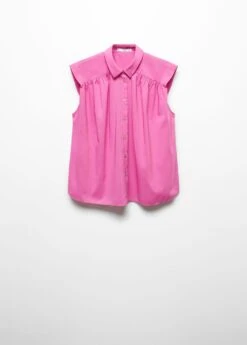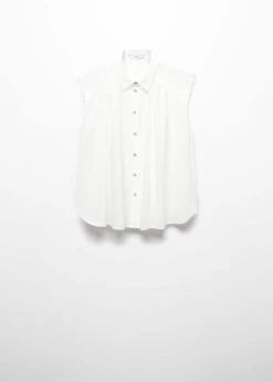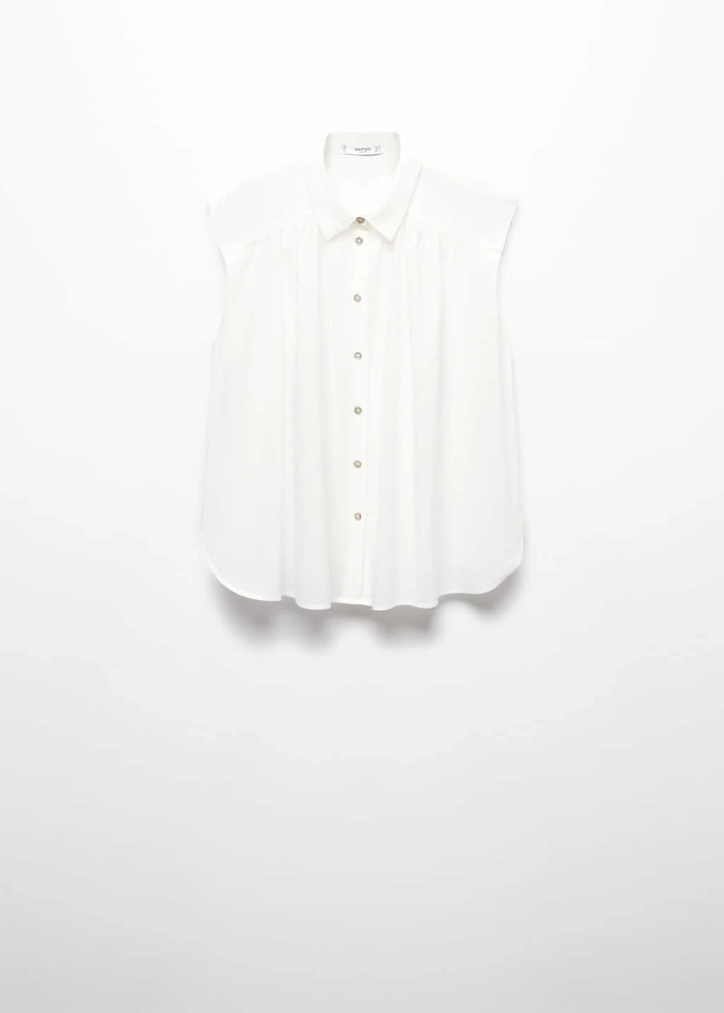 tissu de coton melange, droit, col chemise, sans manches, details fronces, fermeture boutonnee sur le devantComposition: 50% coton,50% viscose