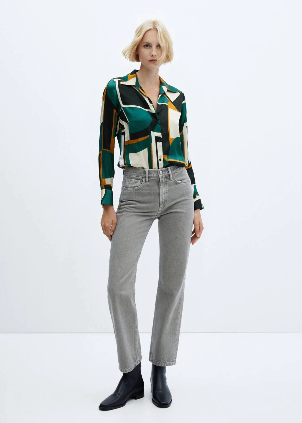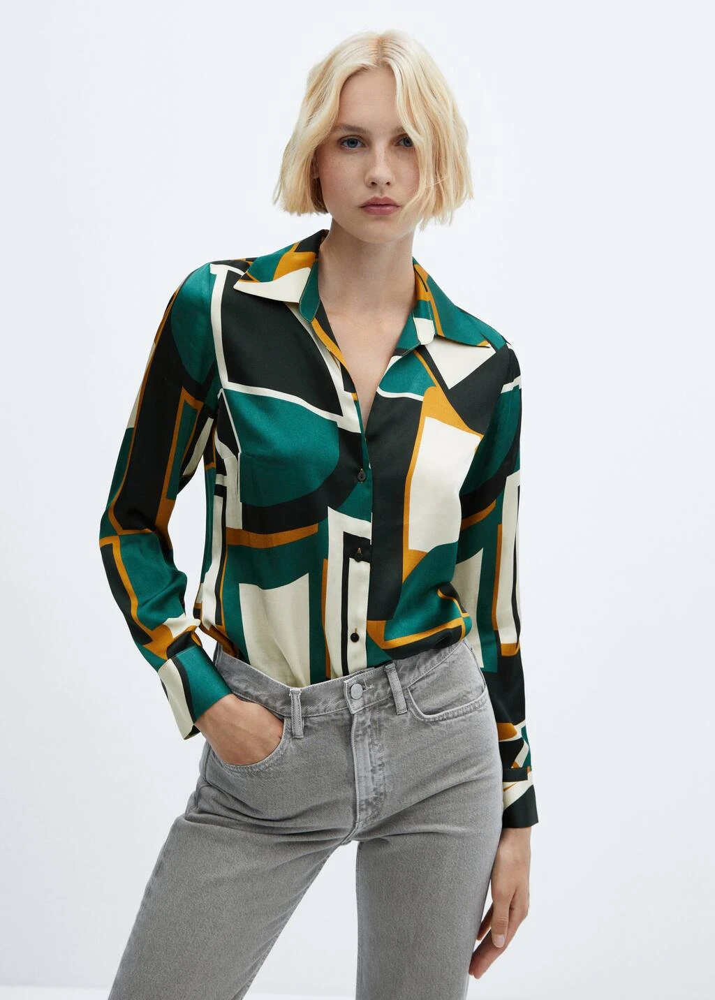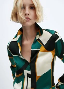 tissu satine, tissu fluide, coupe droite, motif geometrique, col rond, manches longues boutonnees, fermeture boutonnee sur le devant, disponible plusComposition: 100% viscose