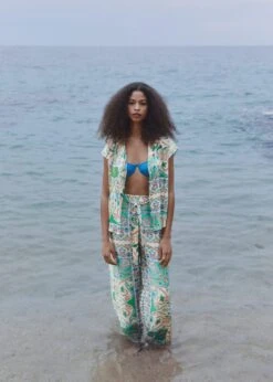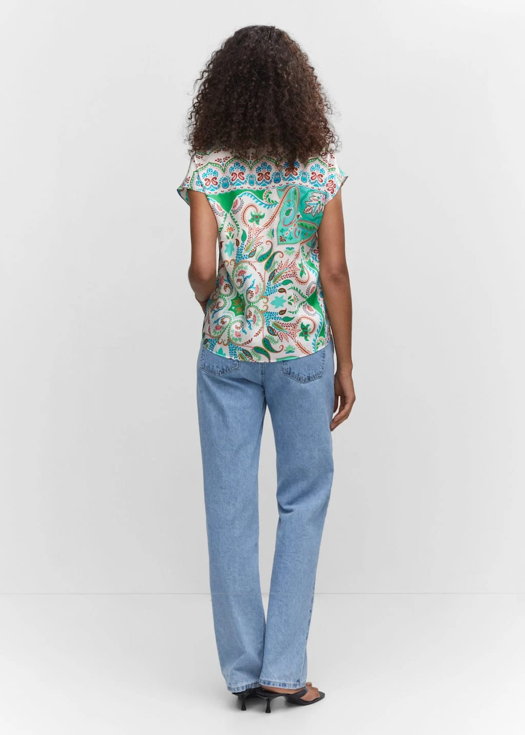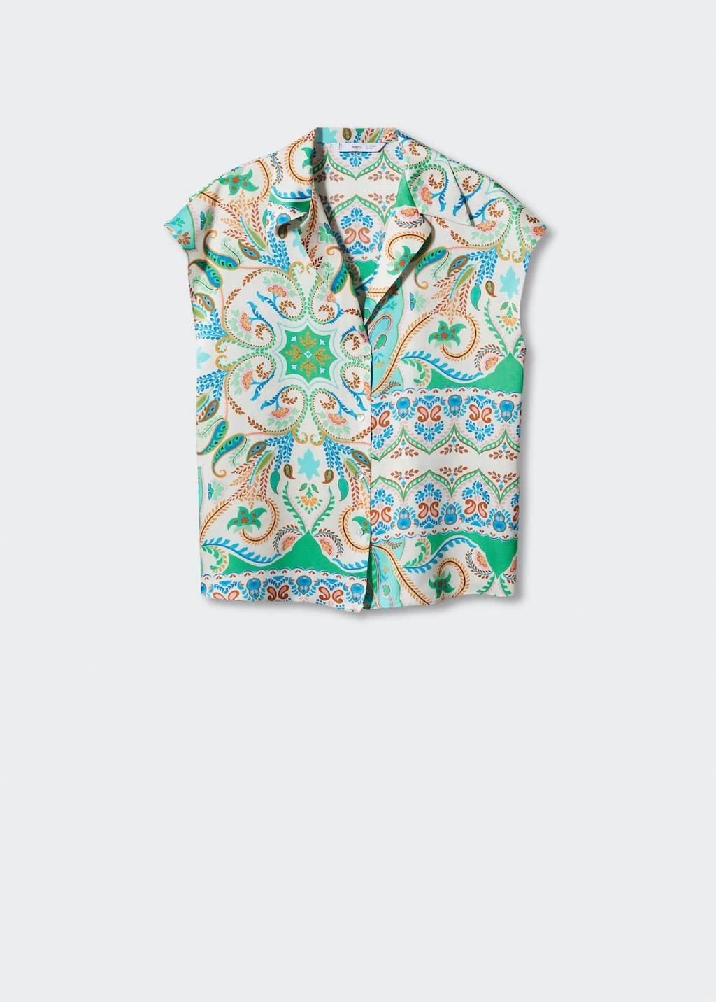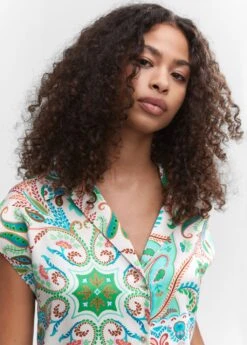 tissu satine, tissu fluide, coupe droite, imprime paisley, col chemise, manches courtes, fermeture boutonnee sur le devant, total lookComposition: 100% polyester