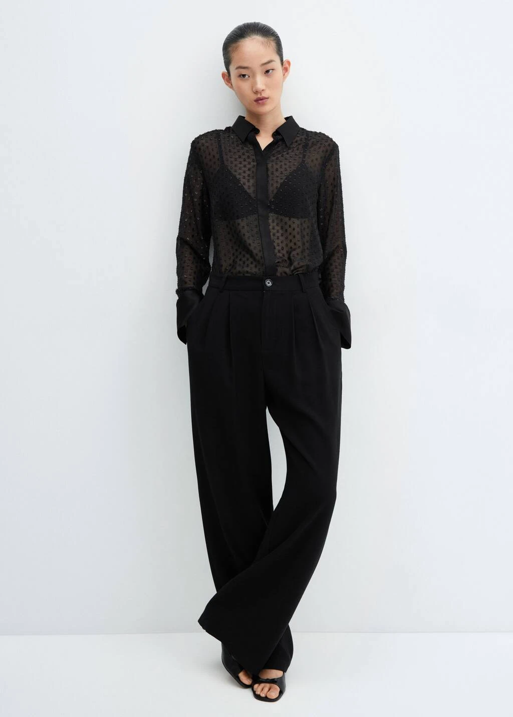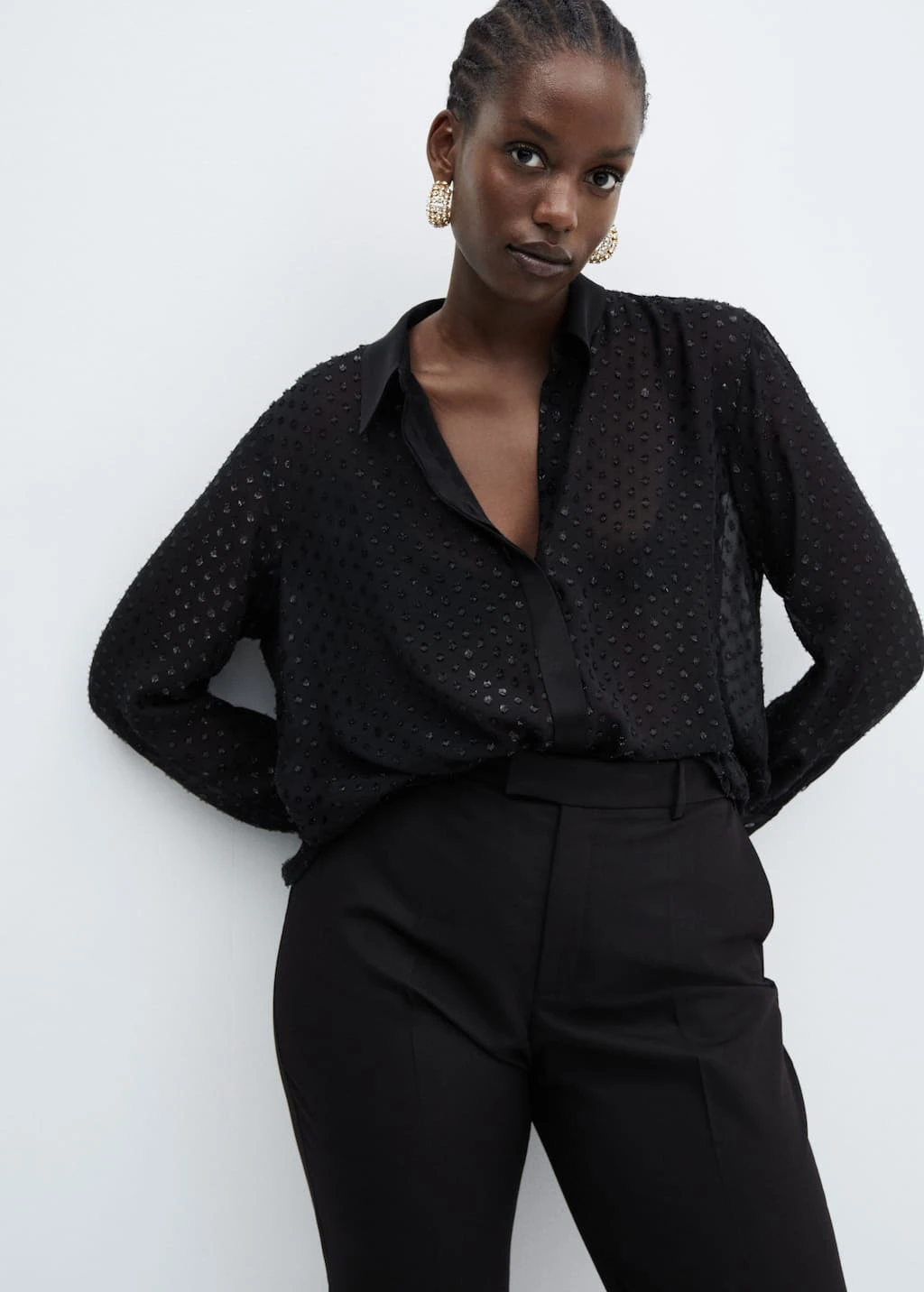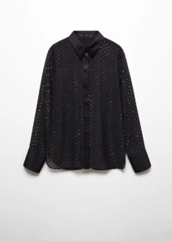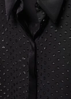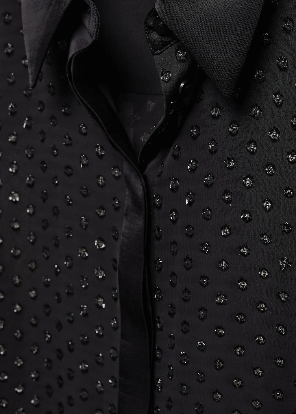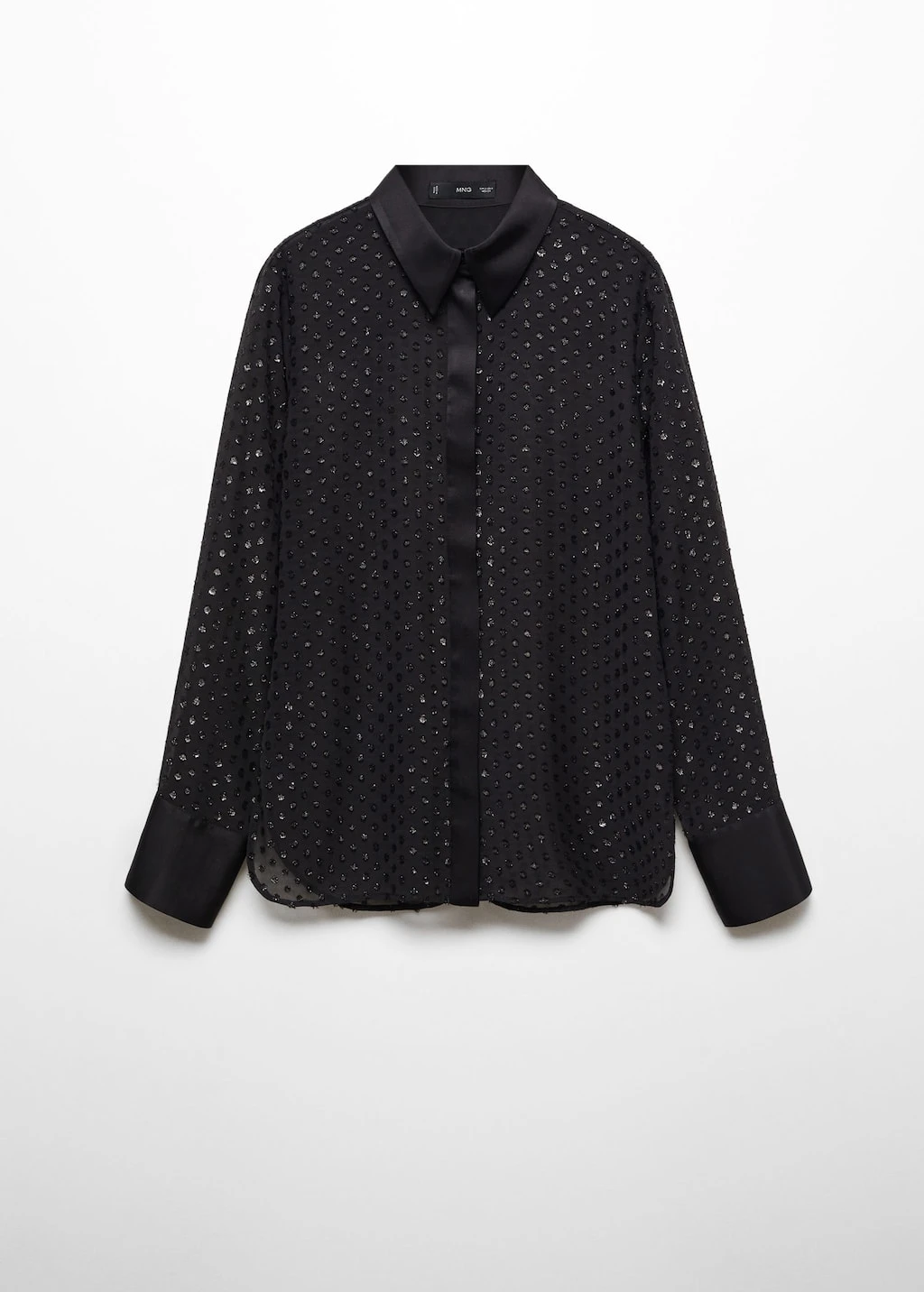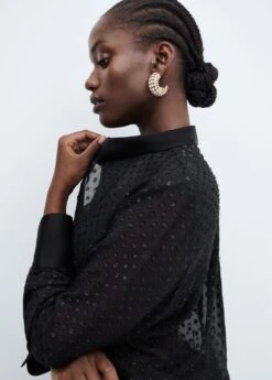 tissu leger, tissu en fil metallise melange, coupe droite, modele semi-transparent, imprime a pois, col chemise, manches longues avec poignets boutonnes, fermeture a boutons dissimulee sur le devant, details en lurex, doublure, disponible plusComposition: 100% polyester. Doublure: 100% polyester. Col: 100% viscose. Revers: 100% viscose. Couvercle: 100% viscose
