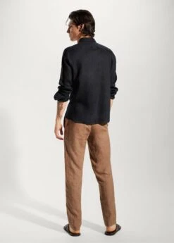100Â % lin, slim-fit, col classique, fermeture boutonnee sur le devant, tissu leger, manches longues, poche plaquee sur la poitrine, collection essentiels, la couleur bleu encre est une exclusivite en ligneComposition: 100% lin