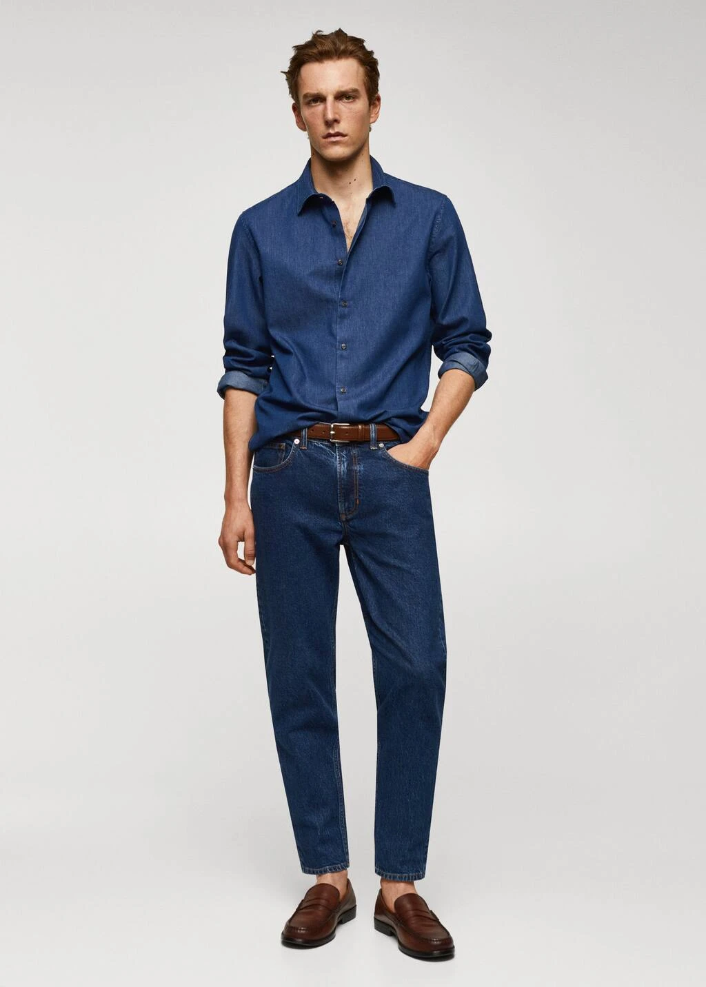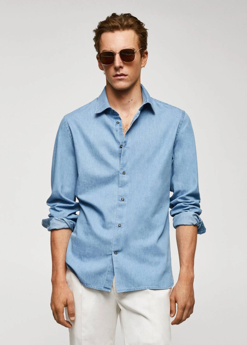 slim-fit, coton chambray, col chemise, fermeture a boutons sur le devant, manches longues avec poignets boutonnes, le mannequin mesure 190 cm et porte une taille m, avec ce vetement en coton, vous soutenez notre investissement dans la mission de better cotton. ce tissu est un equilibre de masse qui remplace ou melange du coton better cotton avec du coton conventionnel, aussi il est possible qu’il ne contienne pas de better cotton. les agriculteurs partenaires beneficient d’un soutien et d’une formation continus.Composition: 100% coton