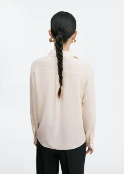 collection selection, 100Â % soie, droit, col chemise, manches longues avec poignets boutonnes, fermeture a boutons dissimulee sur le devant, coutures decoratives, une selection de pieces qui vous accompagneront lors du retour au bureau. confectionnee avec des matieres de qualite pour creer une garde-robe feminine et contemporaine pour votre quotidien.