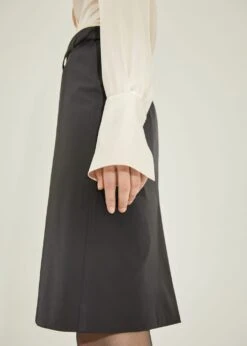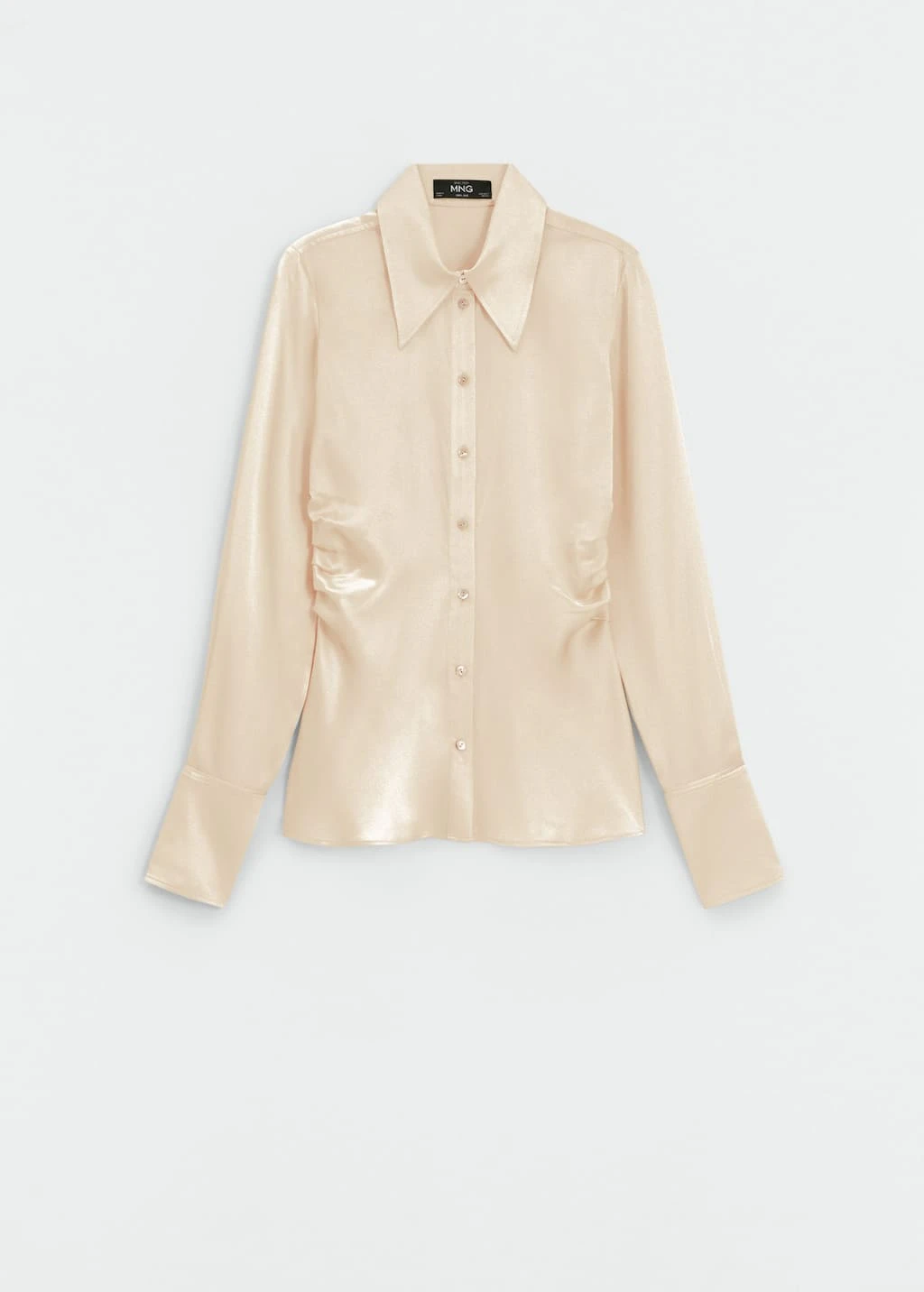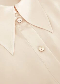 collection selection, 100 % soie, effet satine, coupe longue, coupe droite, col chemise, manches longues avec poignets boutonnes, fermeture a boutons sur le devant, details drapes, une selection de pieces qui vous accompagneront lors du retour au bureau. confectionnee avec des matieres de qualite pour creer une garde-robe feminine et contemporaine pour votre quotidien.