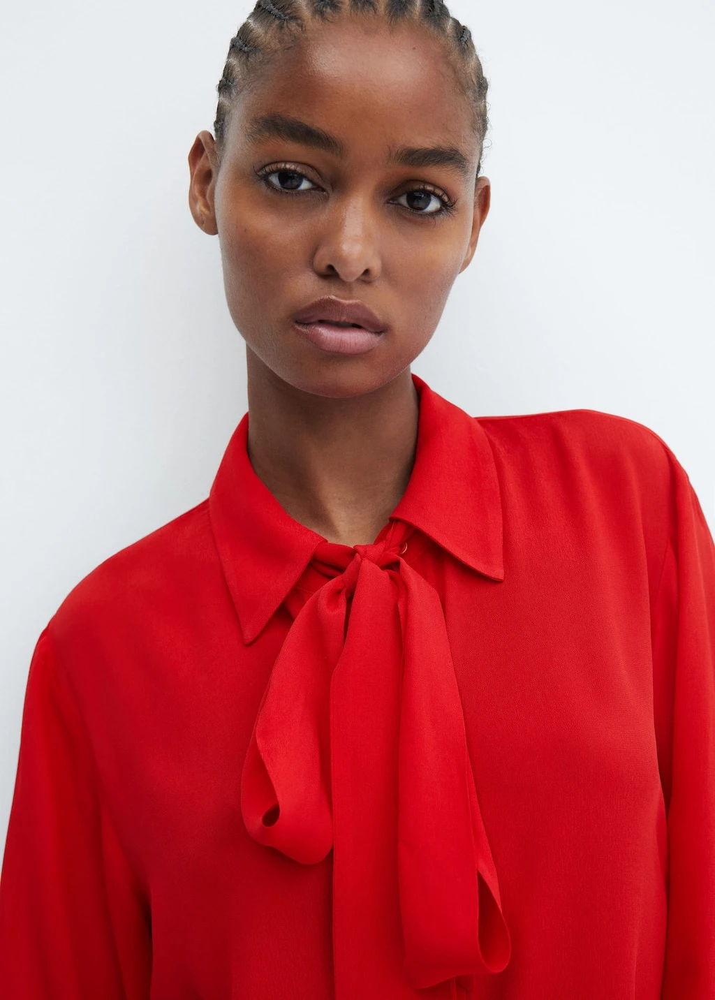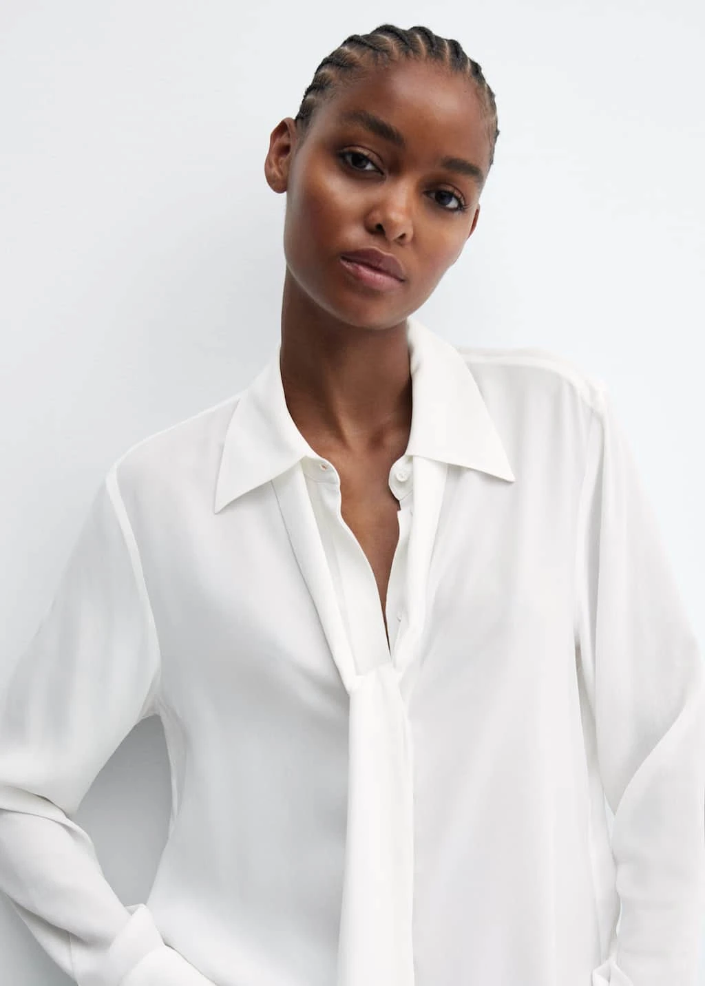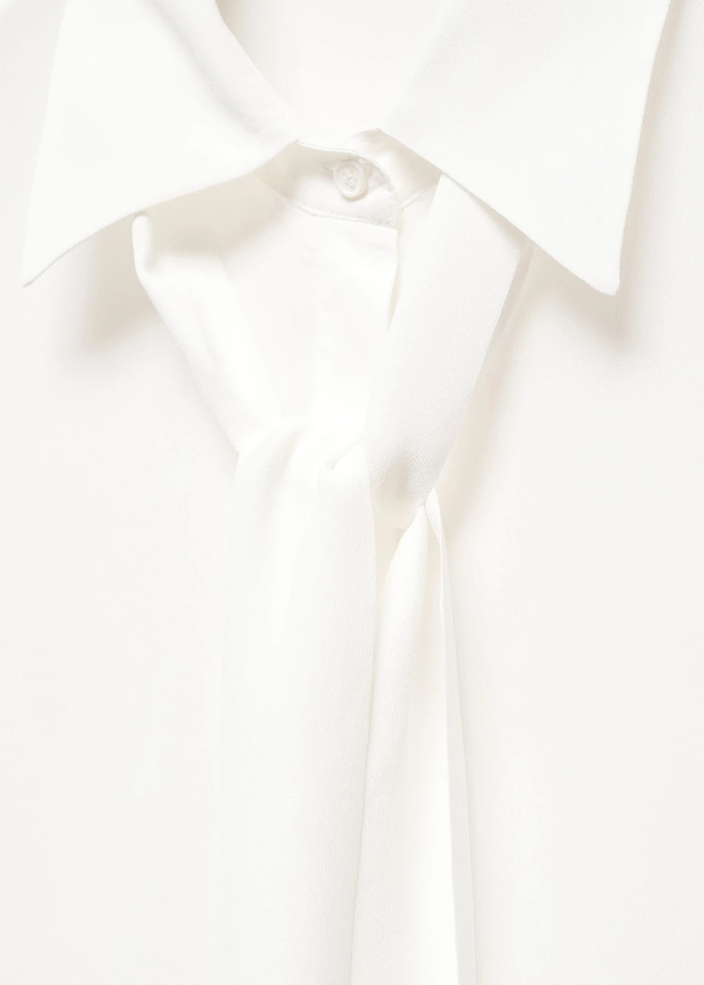 tissu fluide, coupe droite, col chemise, manches longues avec poignets boutonnes, lien a nouer autour du cou, fermeture a boutons sur le devant, nœud amovible sur le colComposition: 100% viscose