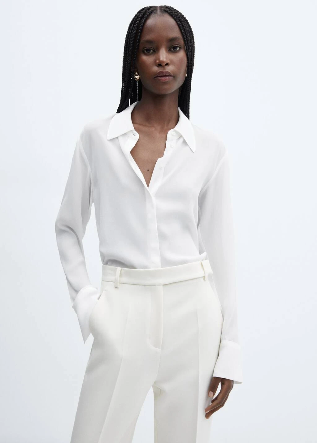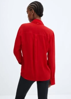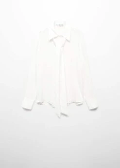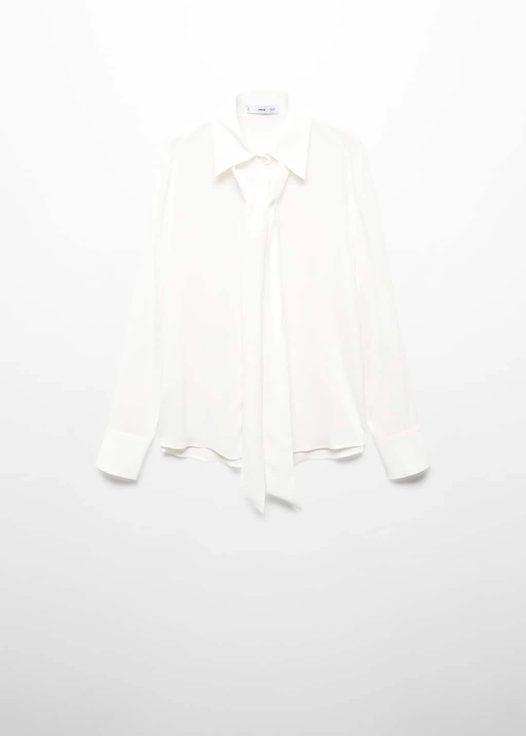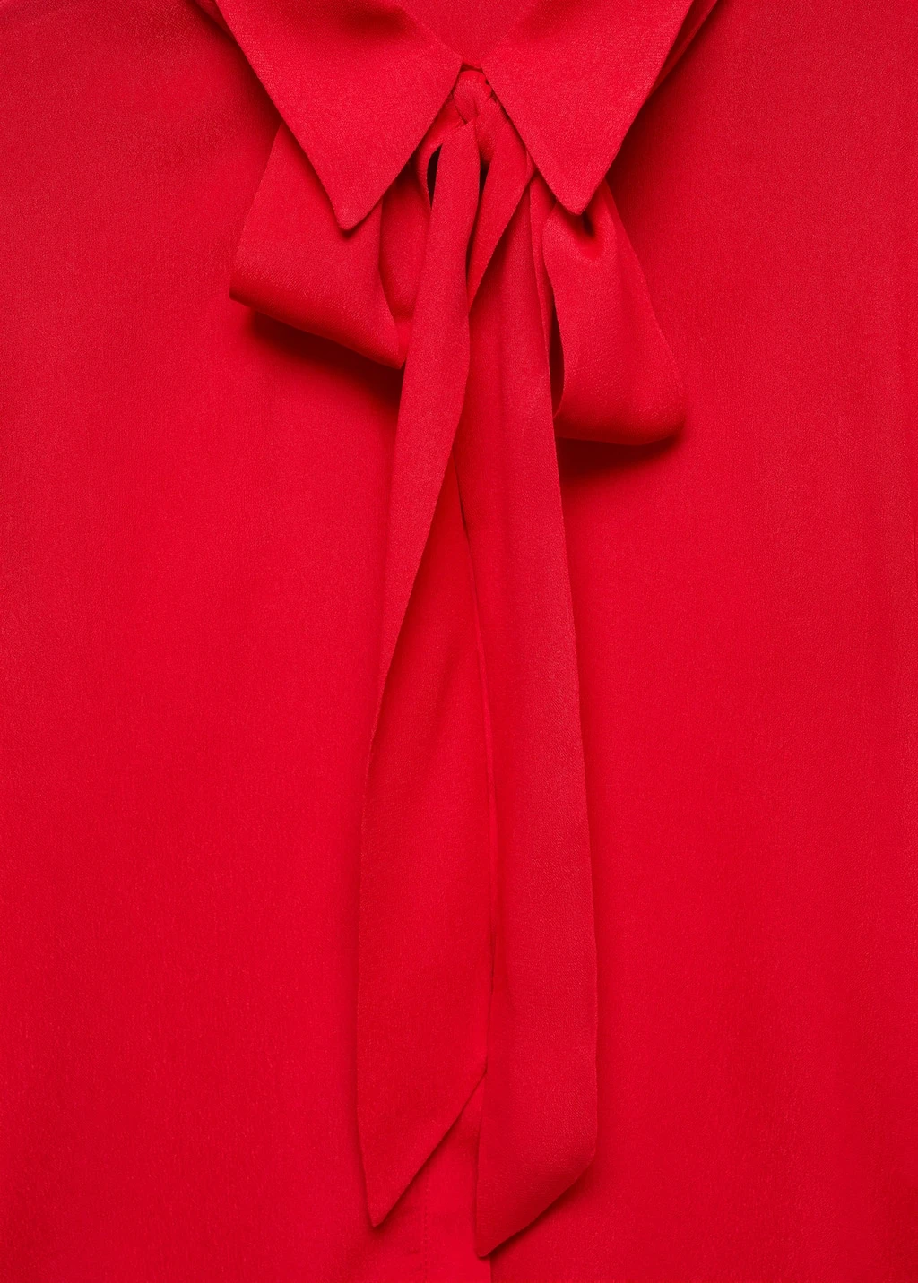 tissu fluide, coupe droite, col chemise, manches longues avec poignets boutonnes, lien a nouer autour du cou, fermeture a boutons sur le devant, nœud amovible sur le colComposition: 100% viscose
