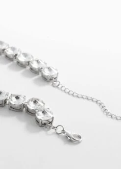 cristaux a facettes, coupe maxi, fermoir a chainette et mousqueton, collection fetes et ceremonies.Composition: 45% verre,45% zinc,5% acier inoxydable,5% plastique