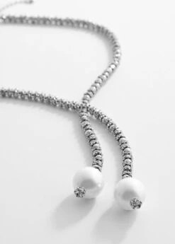 croise, ornement perle, perles de verre, fermoir mousqueton, fermeture reglable, collection fetes et ceremoniesComposition: 40% laiton,30% verre,20% acrylique,5% acier inoxydable,3% zinc,2% plastique