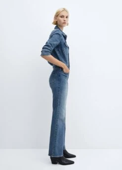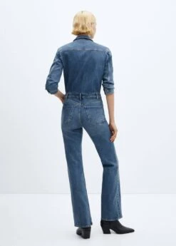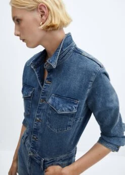 tissu en coton, tissu en denim, coupe longue, col chemise, manches longues avec poignets boutonnes, deux poches boutonnees sur la poitrine, deux poches laterales, deux poches plaquees a l’arriere, fermeture eclair avec boutons, passants de ceinture Composition: 99% coton,1% elasthanne