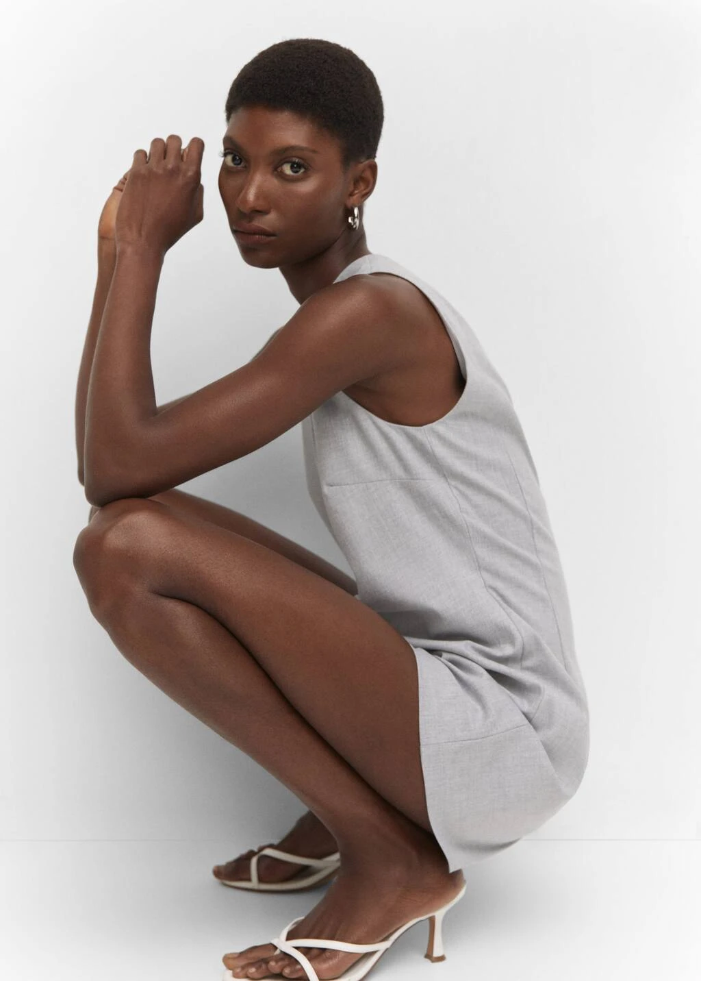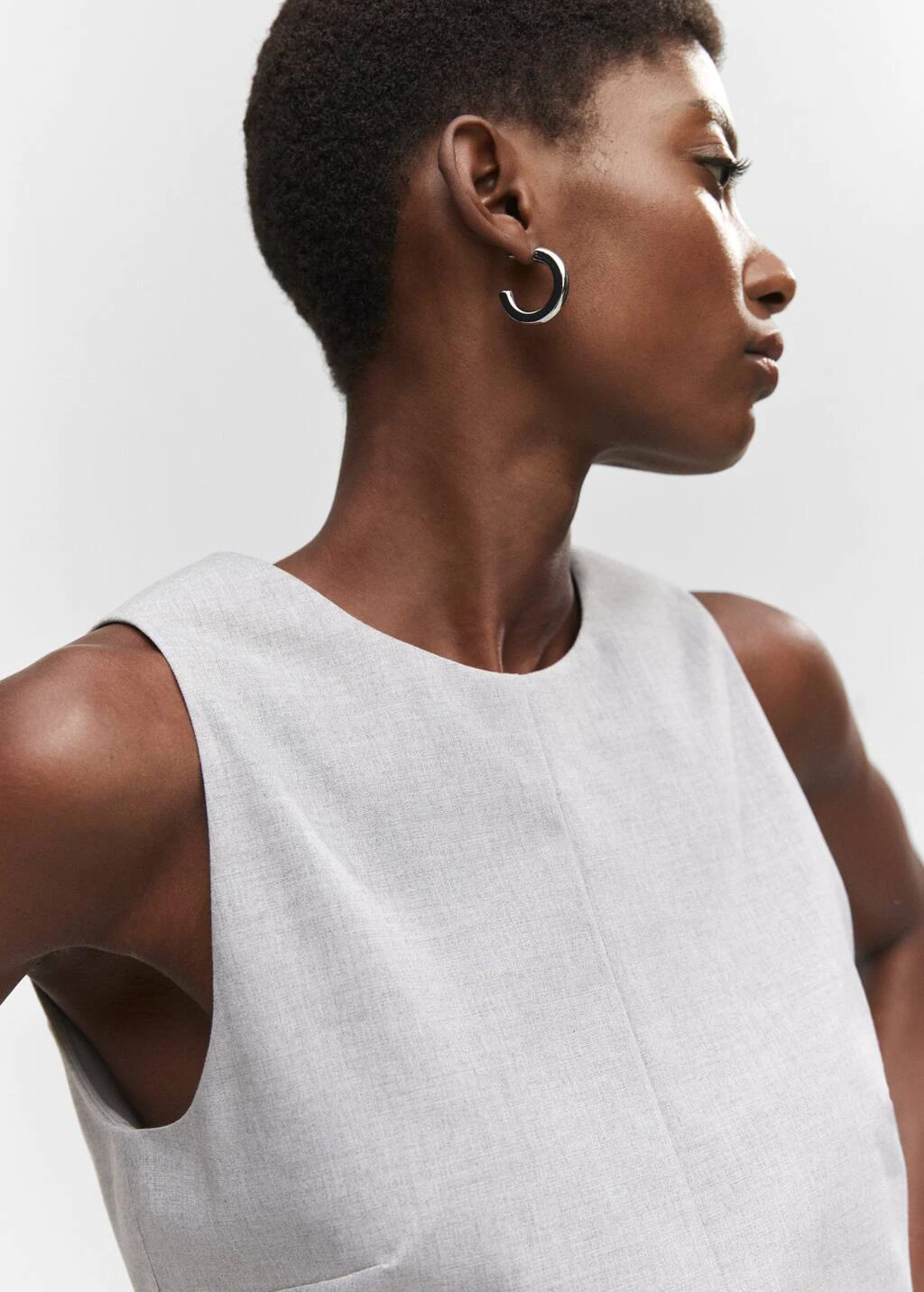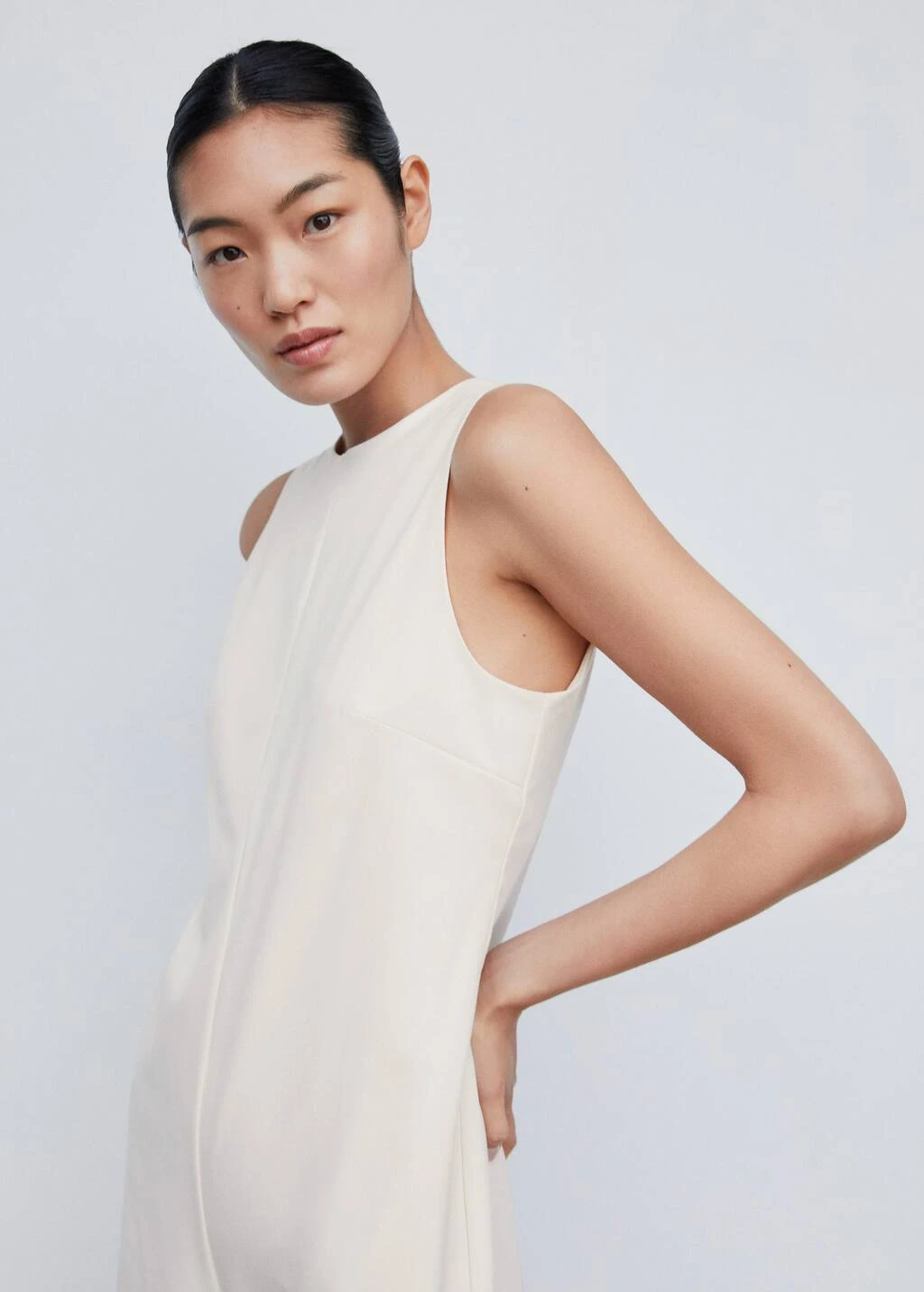 coupe droite, coupe courte, col rond, sans manches, decollete en v dans le dos, fermeture eclair a l’arriereComposition: 40% polyester recyclĂ©,30% polyester,28% viscose,2% elasthanne. Doublure: 80% polyester,20% coton