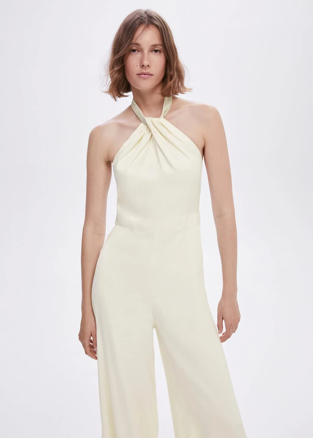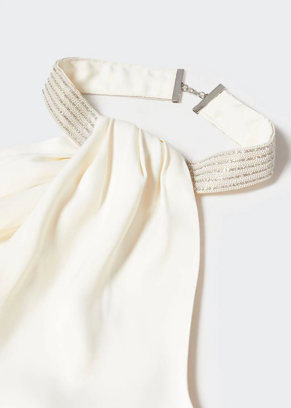 tissu fluide, coupe cintree, coupe longue, emmanchures americaines, detail metallise, sans manches, encolure au dos, fermoir a chainette et mousqueton, collection fetes et ceremonies, une selection de pieces raffinees, fabriquees a partir de materiaux de qualite pour creer une garde-robe feminine et contemporaine pour les grandes occasionsComposition: 99% viscose,1% elasthanne. Doublure: 100% polyester