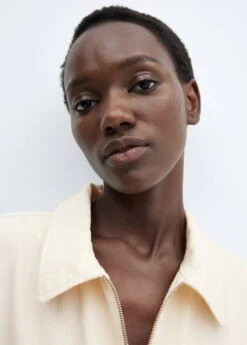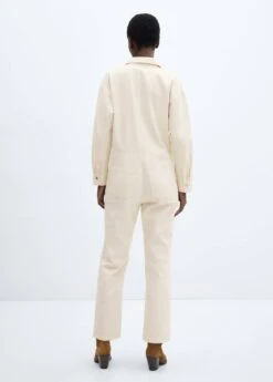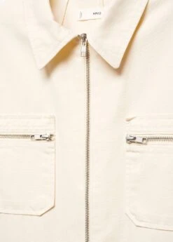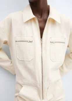 tissu en coton de style jean, ajuste, coupe longue, col chemise, manches longues, deux poches zippees sur la poitrine, deux poches laterales, fermeture eclair sur le devantComposition: 100% coton
