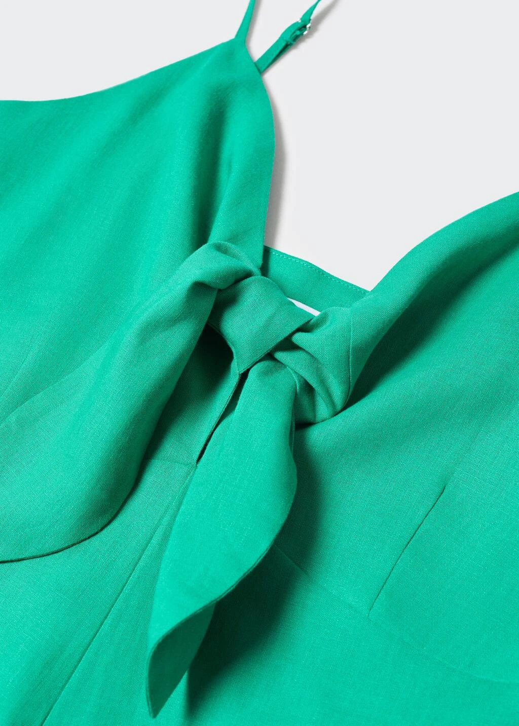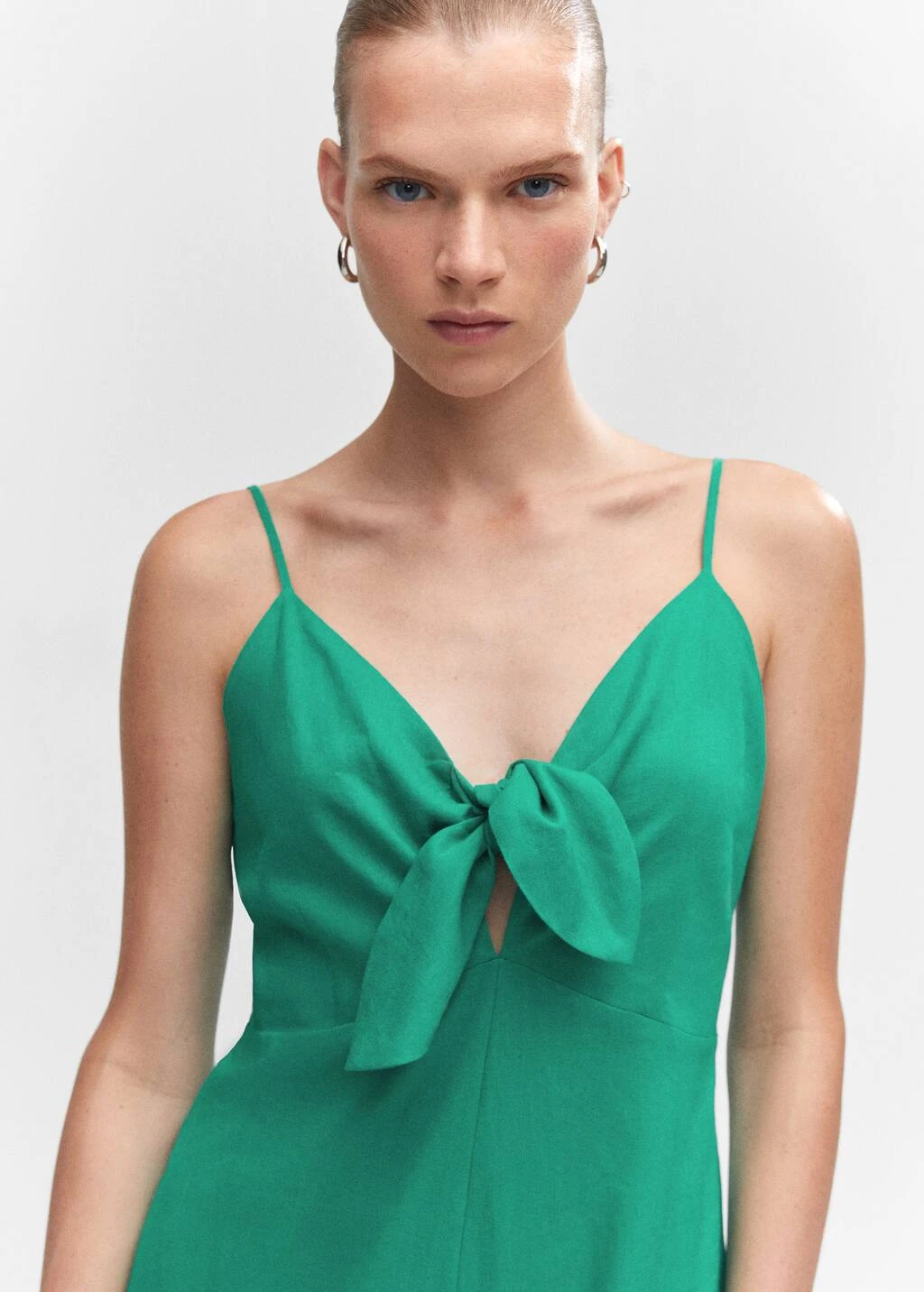 tissu en lin melange, coupe droite, coupe longue, col en v, bretelles fines, bretelles ajustables, sans fermeture, nœud decoratifComposition: 55% lin,45% viscose
