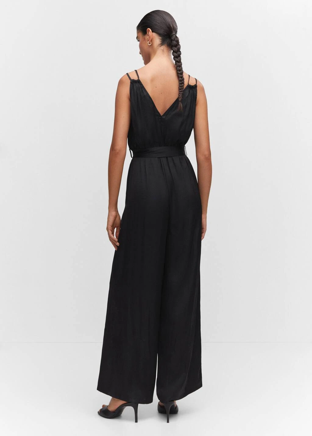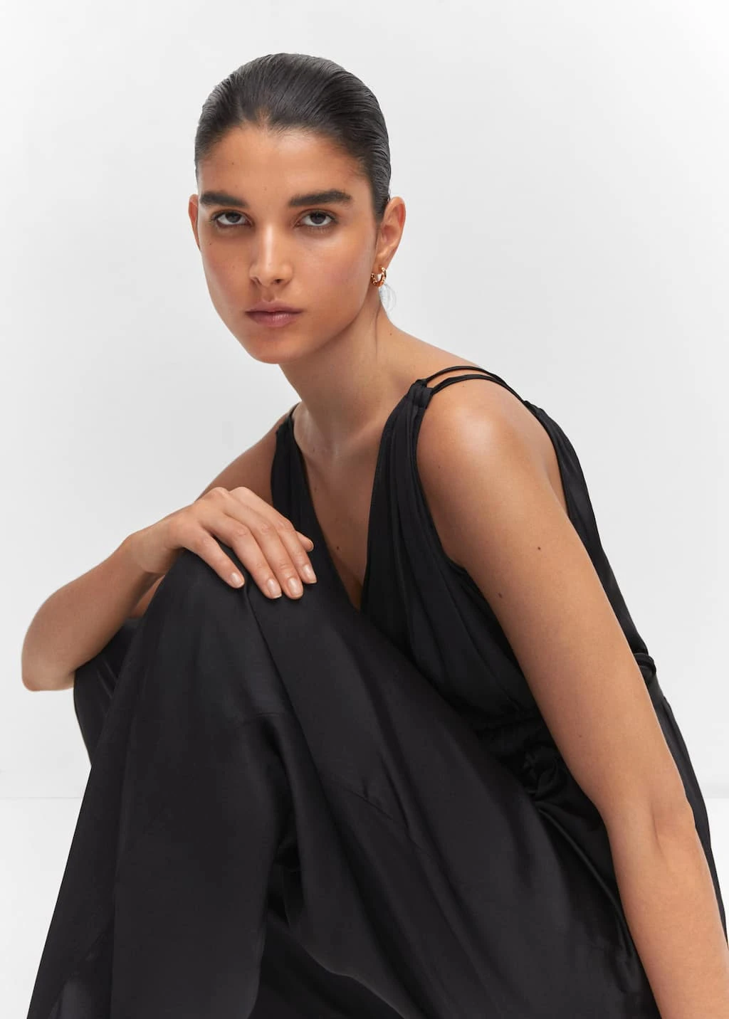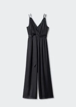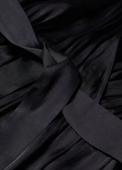 tissu satine, tissu plisse, croise, coupe droite, coupe longue, bretelles fines doubles, sans fermeture, ceinture a nouer a la tailleComposition: 100% polyester
