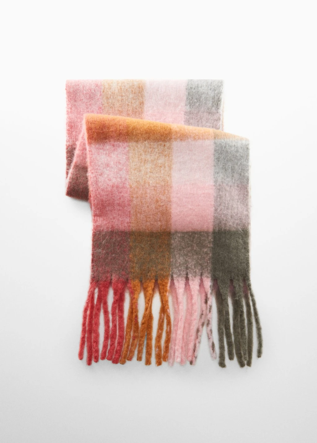 tissu en maille, imprime carreaux, bord frangeComposition: 100% polyester