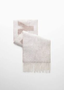 tissu de laine melange, bicolore, message imprime, bord frangeComposition: 77% polyester,23% laine