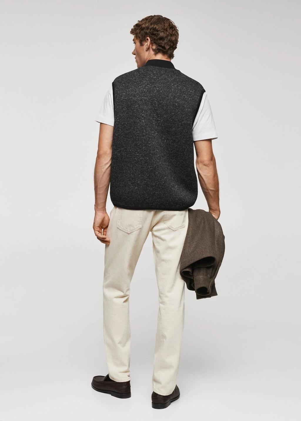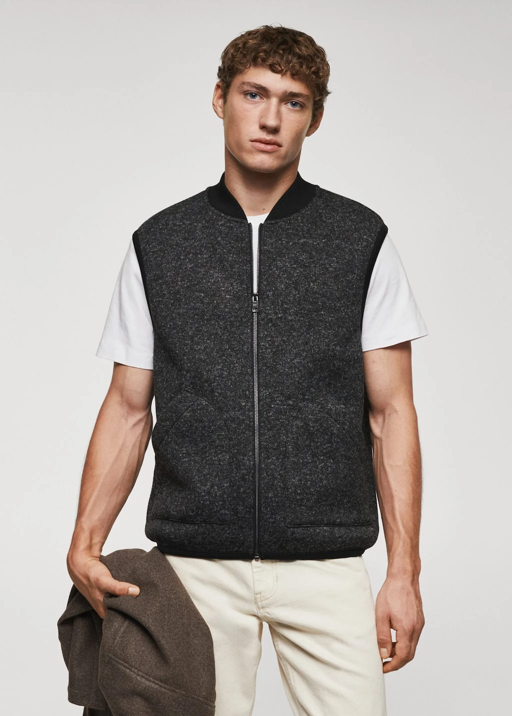 slim-fit, jaspe, sans manches, col bomber en maille cotelee, fermeture eclair a l’avant, deux poches avant, le mannequin mesure 190 cm et porte une taille mComposition: 100% polyester