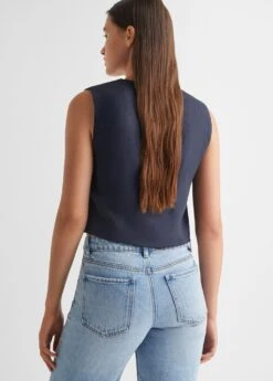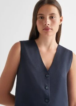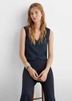 style crop, col en v, fermeture boutonnee, sans manchesComposition: 60% viscose,40% polyester. Doublure: 100% coton