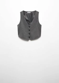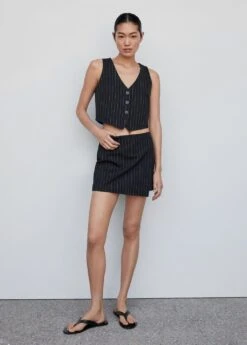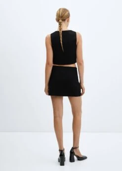 coupe droite, style crop, col en v, bretelles larges, fermeture boutonnee sur le devant, total lookComposition: 40% viscose,30% polyamide,24% polyester,6% elasthanne