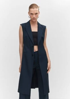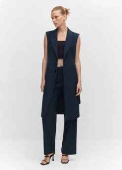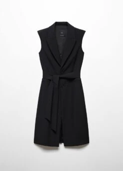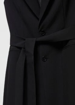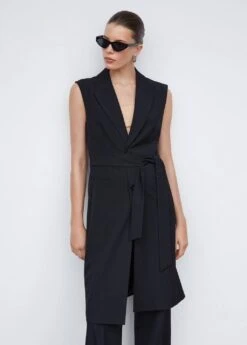 tissu fluide, droit, coupe longue, col en v avec rabat, sans manches, deux poches passepoilees a l’avant, fermeture boutonnee sur le devant, nœud a la taille, doublure, total lookComposition: 80% polyester,16% viscose,4% elasthanne. Doublure: 100% polyester. Ceinture: 80% polyester,16% viscose,4% elasthanne