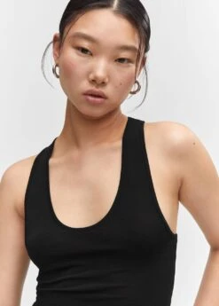 tissu fluide, tissu en maille fine, coupe cintree, col rond, bretelles larges, dos nageurComposition: 92% viscose,8% elasthanne