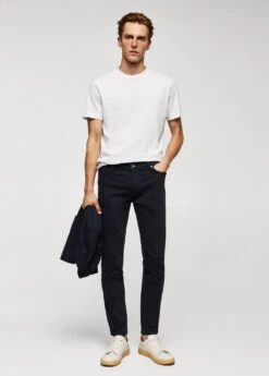 coupe skinny, ce jean presente une composition equilibree de coton et d’elasthanne, ce qui le rend confortable et souple a porter, style jean, taille normale, passants de ceinture , fermeture eclair avec bouton, cinq poches, deux poches avant. la droite comporte une poche gousset. , deux poches plaquees a l’arriere, le mannequin mesure 190 cm et porte une taille 42Composition: 98% coton,2% elasthanne
