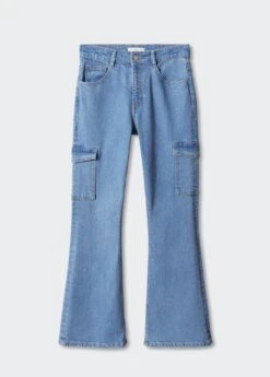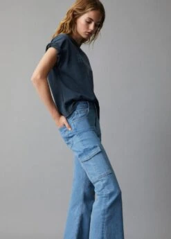 tissu en coton de style jean, coupe longue, taille normale, style flare, deux poches avant, le mannequin mesure 172 cm et porte une taille mComposition: 98% coton,2% elasthanne